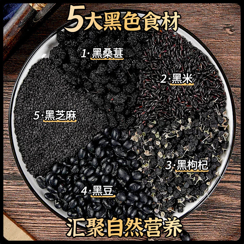 五黑粉黑芝麻糊现磨无糖纯桑葚黑豆黑米五谷杂粮粉核桃冲泡黑枸杞