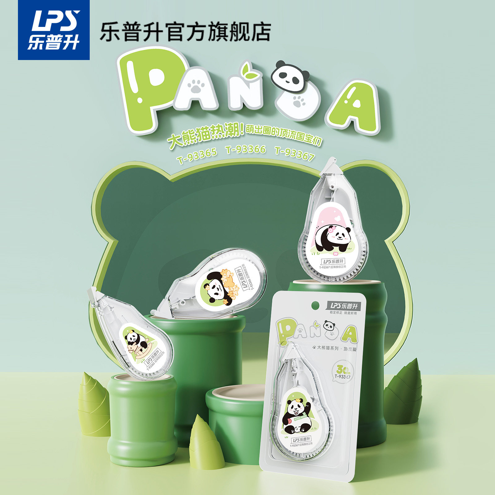 乐普升修正带大熊猫学生用创意日韩可爱ins风卡通涂改带黑科技高颜值乐普生男生文具小学生专用改正带大容量
