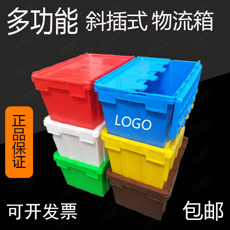 加厚塑周转箱料带盖物流运输框折叠式全新料斜插式收纳盒子大号