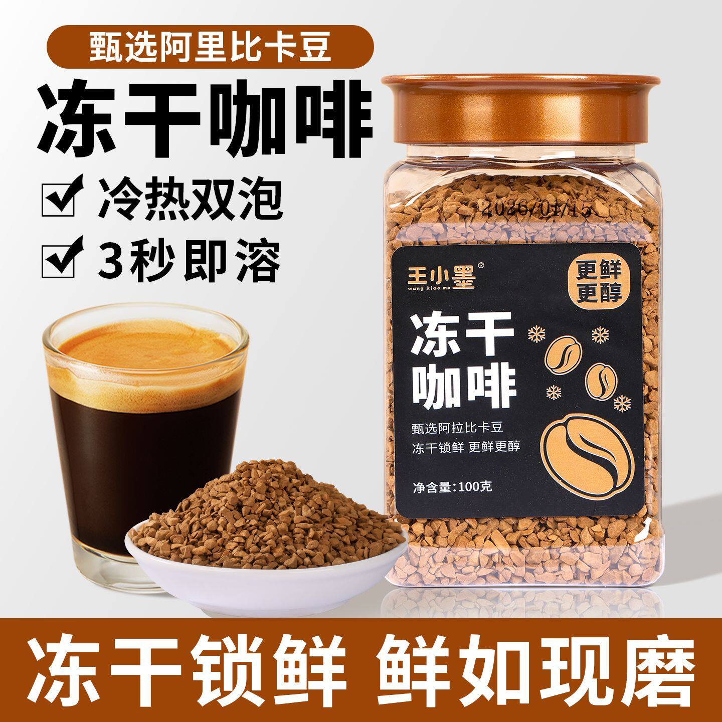 云南小粒咖啡冻干咖啡粉美式黑咖啡冷萃速溶咖啡冻干粉纯黑咖啡粉