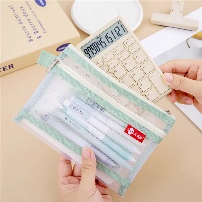 晨光文具学科科目分类袋小学生文件袋拉链式试卷收纳袋透明网纱双层大容量书袋作业资料a4考试专用袋票据产检