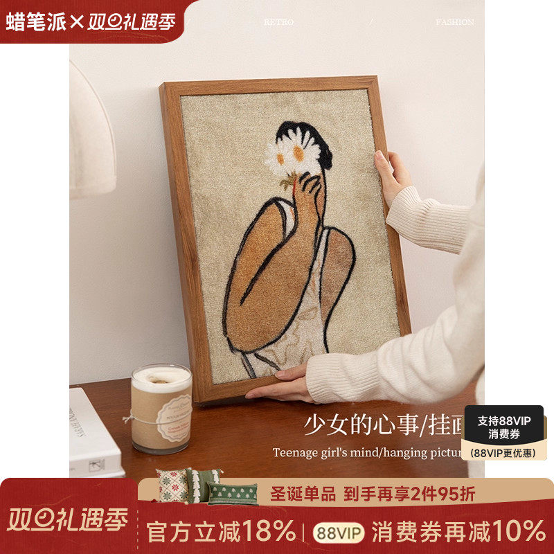 【第3件0元专区】蜡笔派少女的心事挂画中古风沙发客厅玄关挂毯画