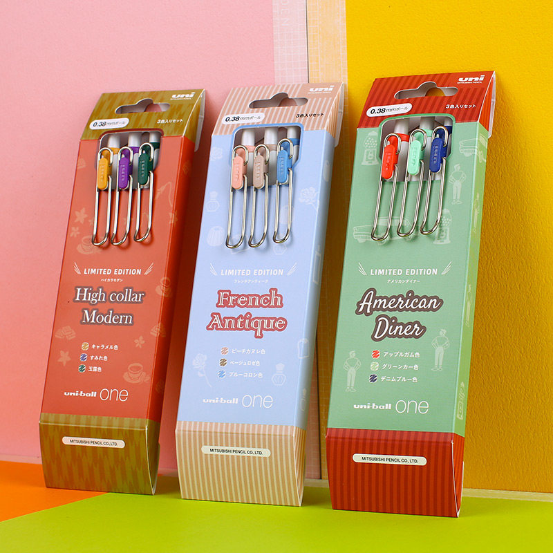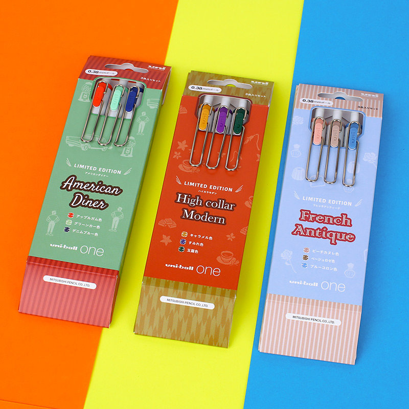 日本三菱按动中性笔UNI小浓芯3支装限量版书写字迹更加浓黑UMN-S