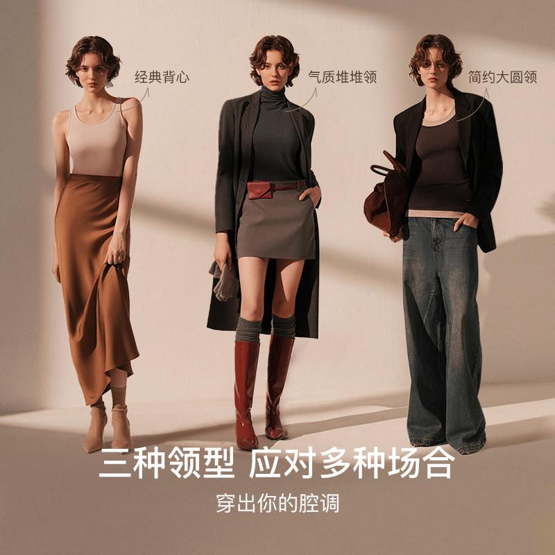 三福打底衫2025新款秋冬季保暖小中领毛衣无缝内搭上衣女装504415