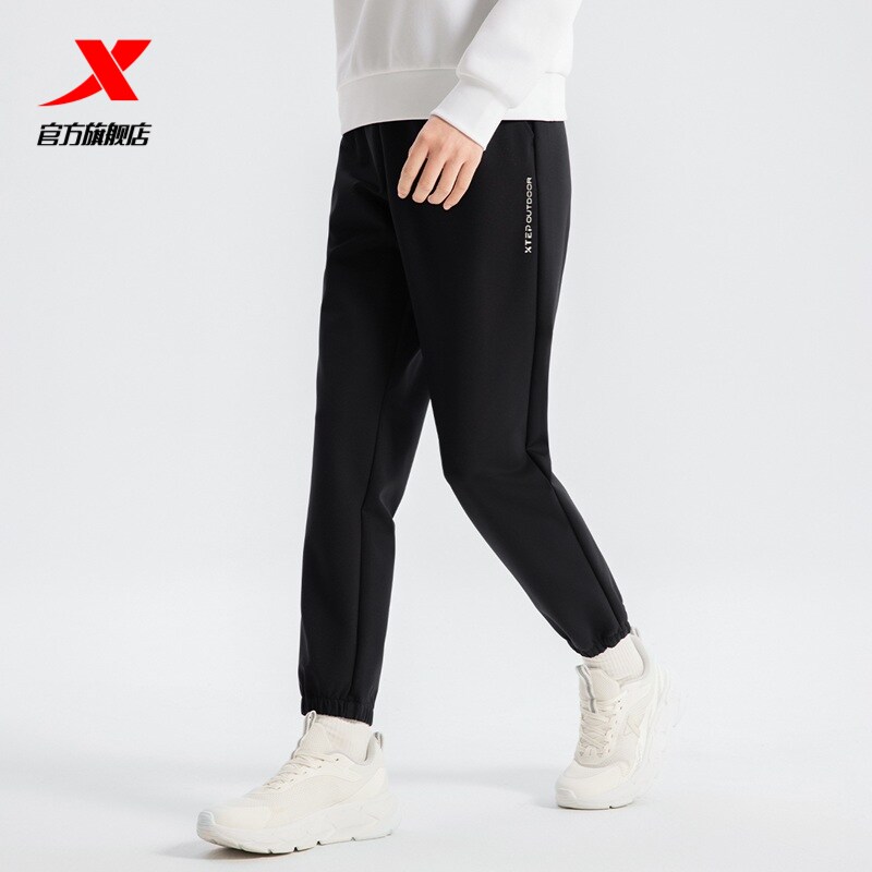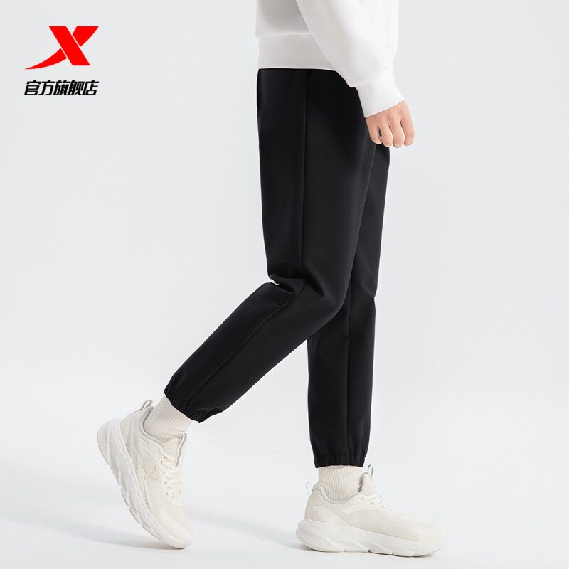 特步加绒卫裤男士加厚秋冬款裤子针织保暖裤直筒裤子休闲运动裤
