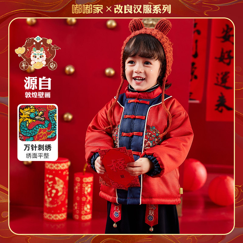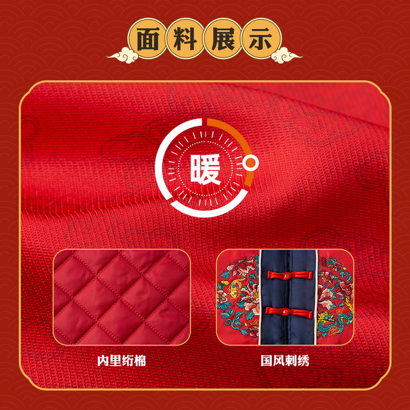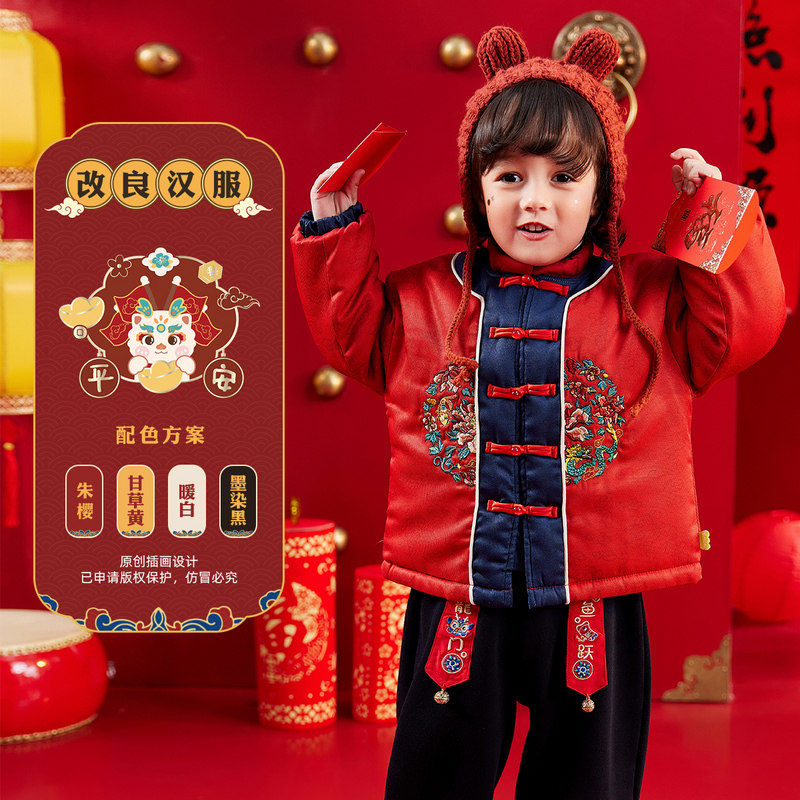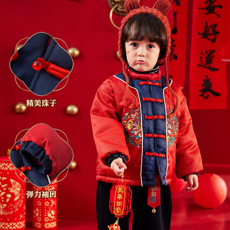 儿童唐装外套冬季童装宝宝新中式年装上衣冬款男童红色拜年服冬装