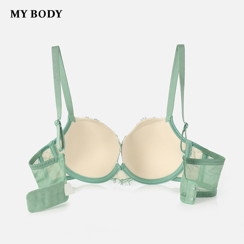 商场同款MYBODY女士内衣精致性感蕾丝大胸显小薄杯时尚型文胸