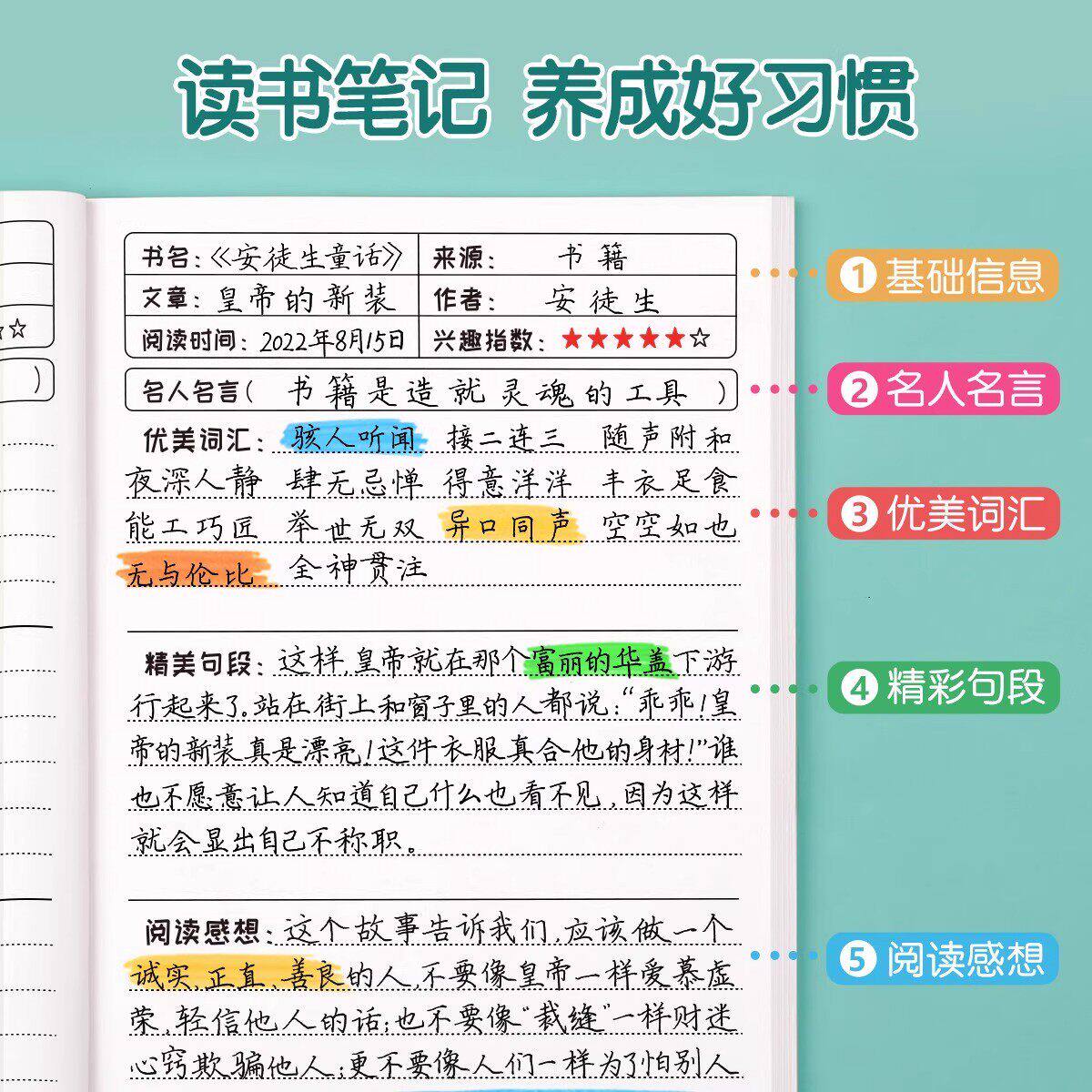 读书笔记本好词好句摘抄本专用本小学生初中生阅读记录卡三年级积累本语文加厚a5b5笔记开学横线护眼词汇网格