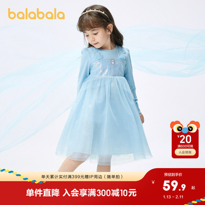 巴拉巴拉balaOne童装女公主裙2025秋冬新款儿童连衣裙针织网纱裙