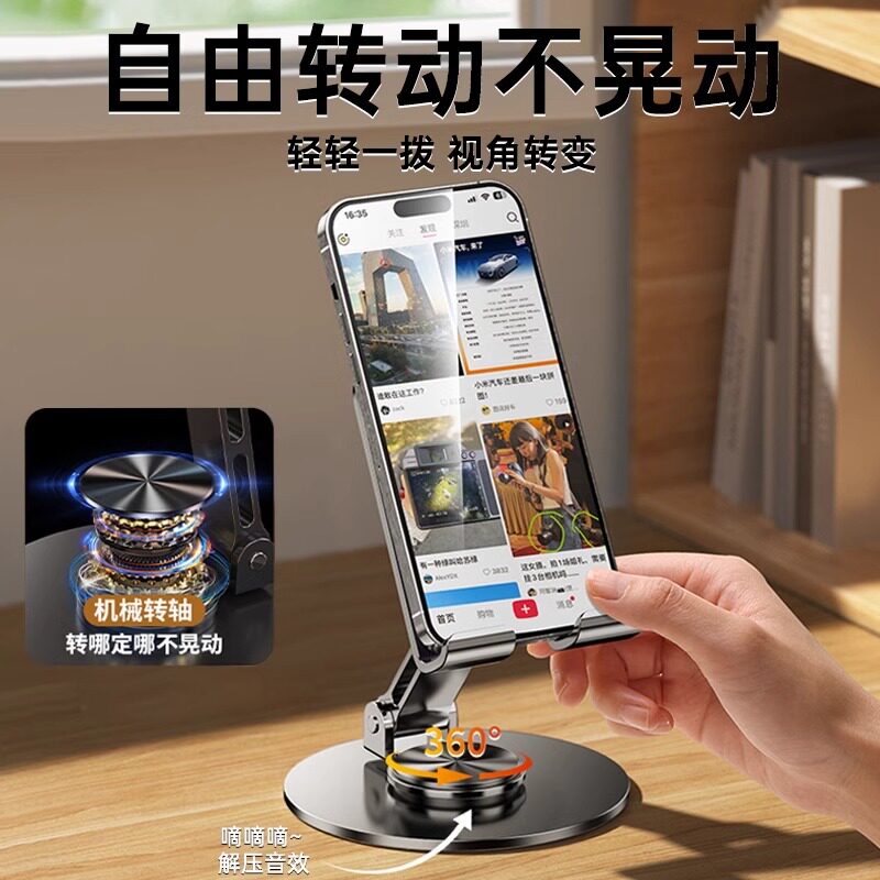 2025新款手机支架桌面懒人平板电脑支撑架可旋转折叠手机架直播视频ipad支撑架子航空金属720旋转便携手机架