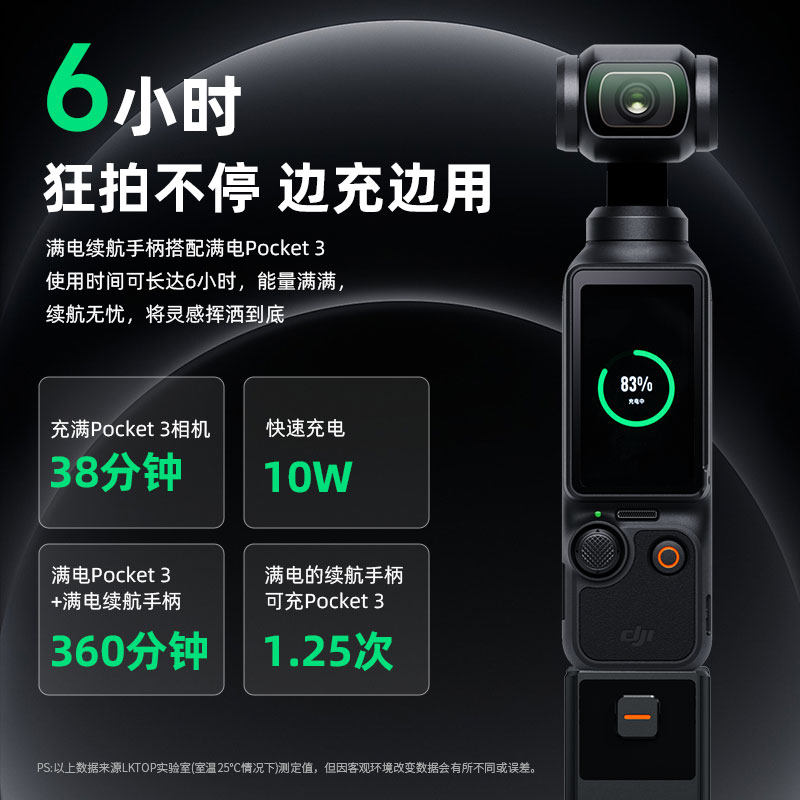 【国家3C认证】LKTOP立可拓适用DJI大疆Pocket3续航手柄Osmo Pocket4电池充电手柄5000mAh充电宝延长手柄配件
