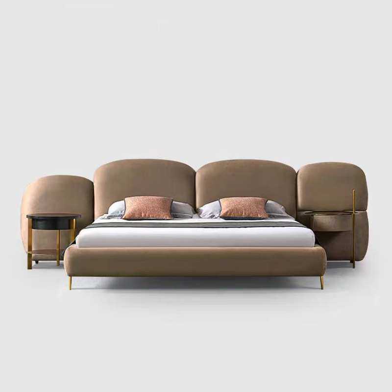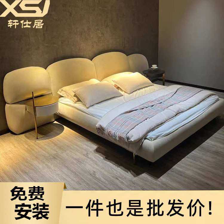 意式极简轻奢主卧双人床床别墅北欧现代女生卧室布艺床大师设计