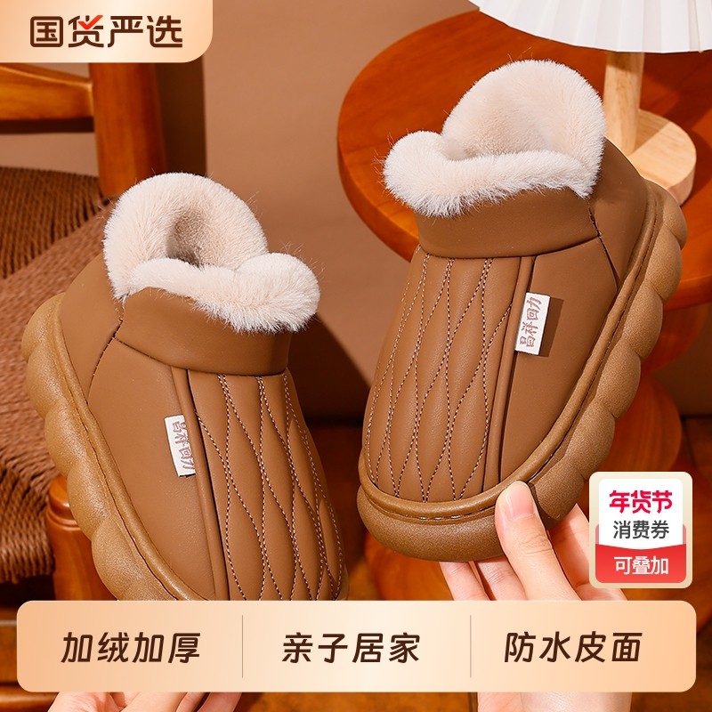 2025秋冬季踩屎感儿童棉拖鞋包跟男女童室内居家防水加绒亲子棉鞋