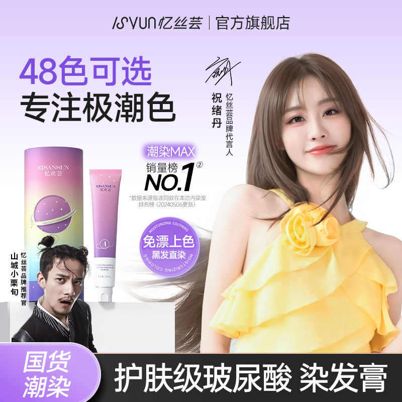 忆丝芸极潮染发膏女纯自己在家染头发染发剂紫色蓝色灰色树莓红粉