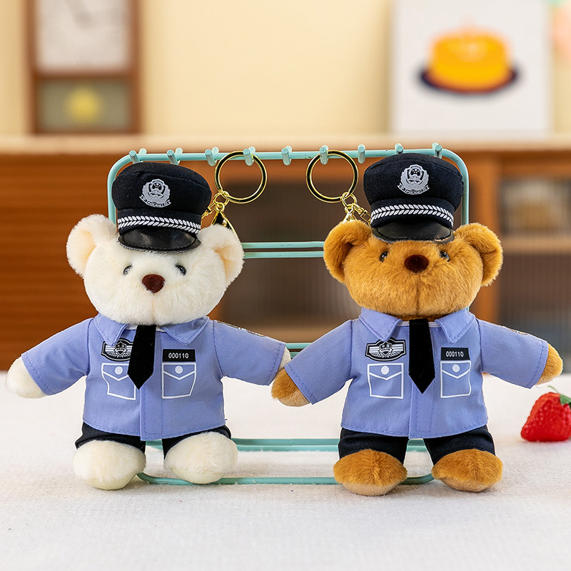 网红交警熊挂件公仔消防小熊男女包包汽车钥匙挂饰警察熊吊饰玩偶