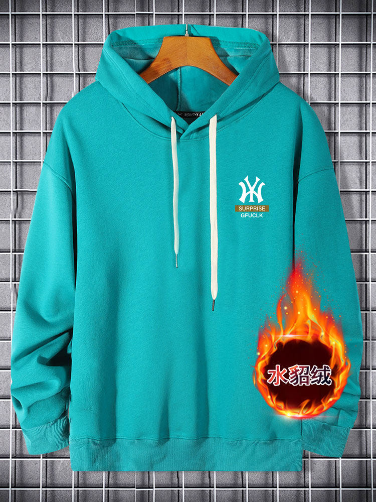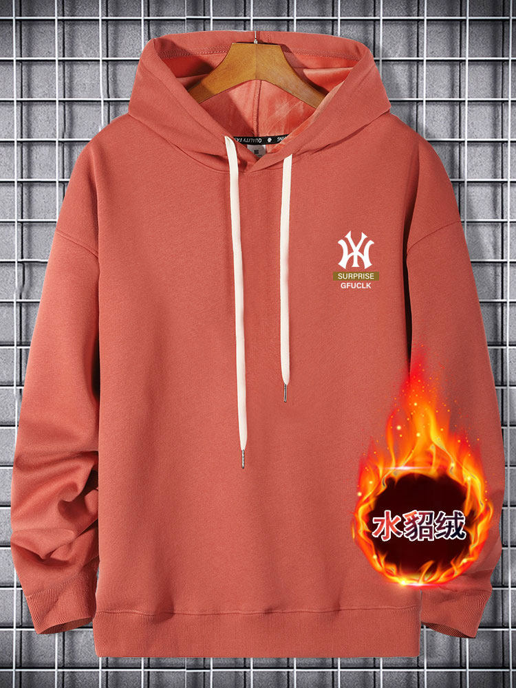 FGNX真维斯男款2025年冬季加绒保暖圆领卫衣潮流印花休闲舒适上衣