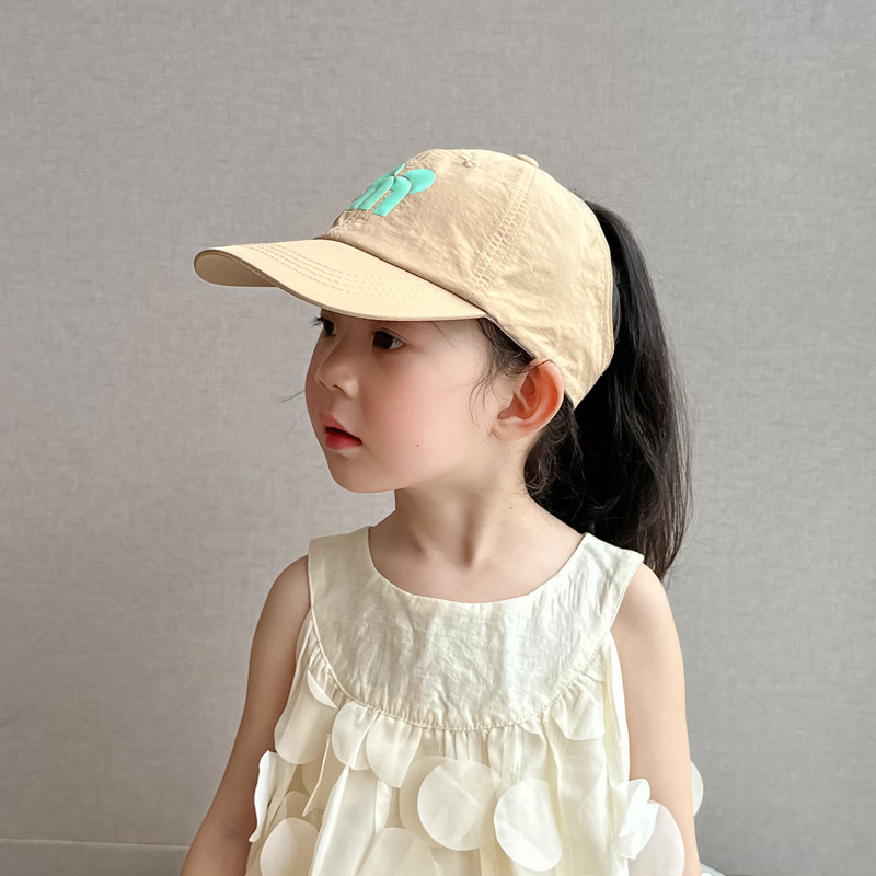 儿童帽子夏季女童可扎高马尾棒球帽遮阳帽女孩防晒帽鸭舌帽空顶帽