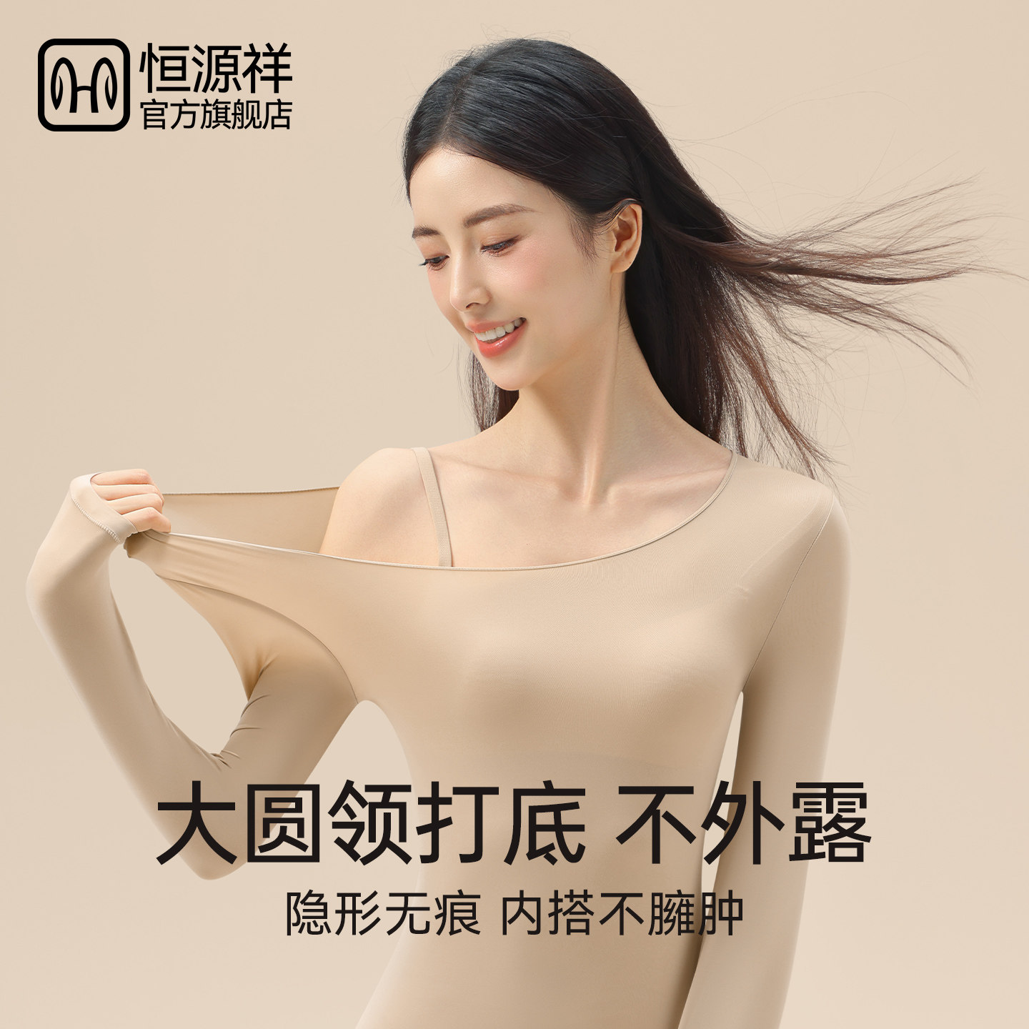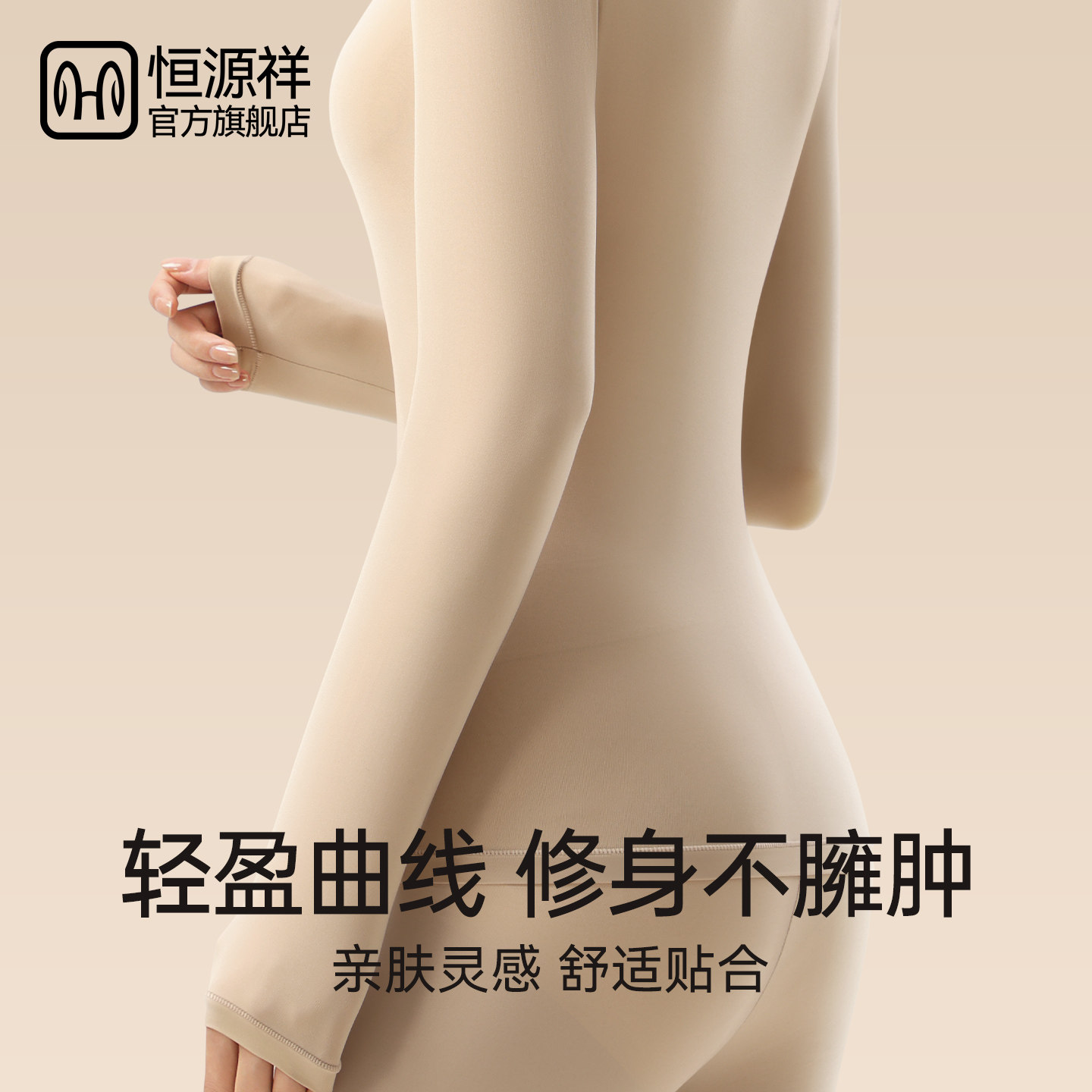 恒源祥肌底保暖内衣女士无痕套装隐形打底衫薄款美体秋衣秋裤冬季