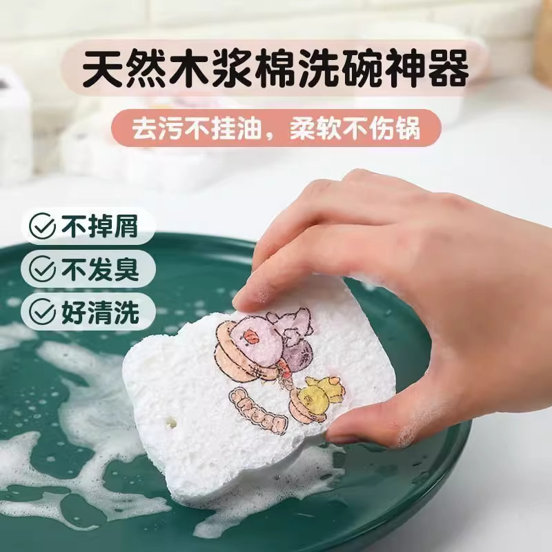 木浆棉海绵擦洗碗布压缩百洁布海绵抹布不沾油厨房专用锅刷魔力擦