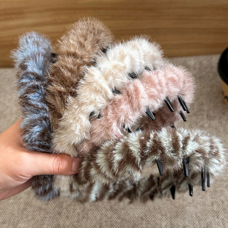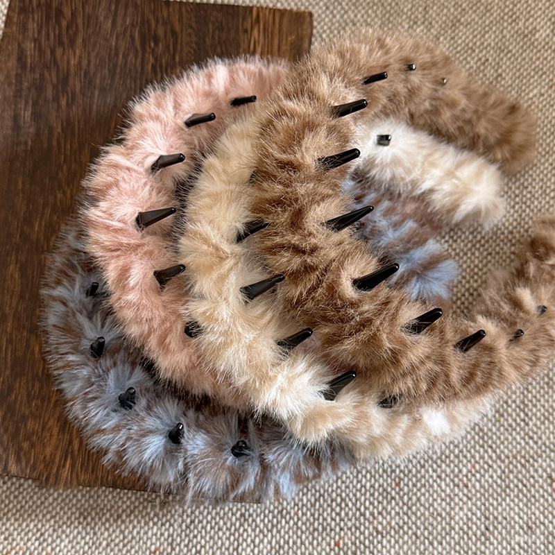 毛绒豹纹带齿发箍女秋冬高级感头饰高颅顶发卡洗脸防滑头箍头饰品