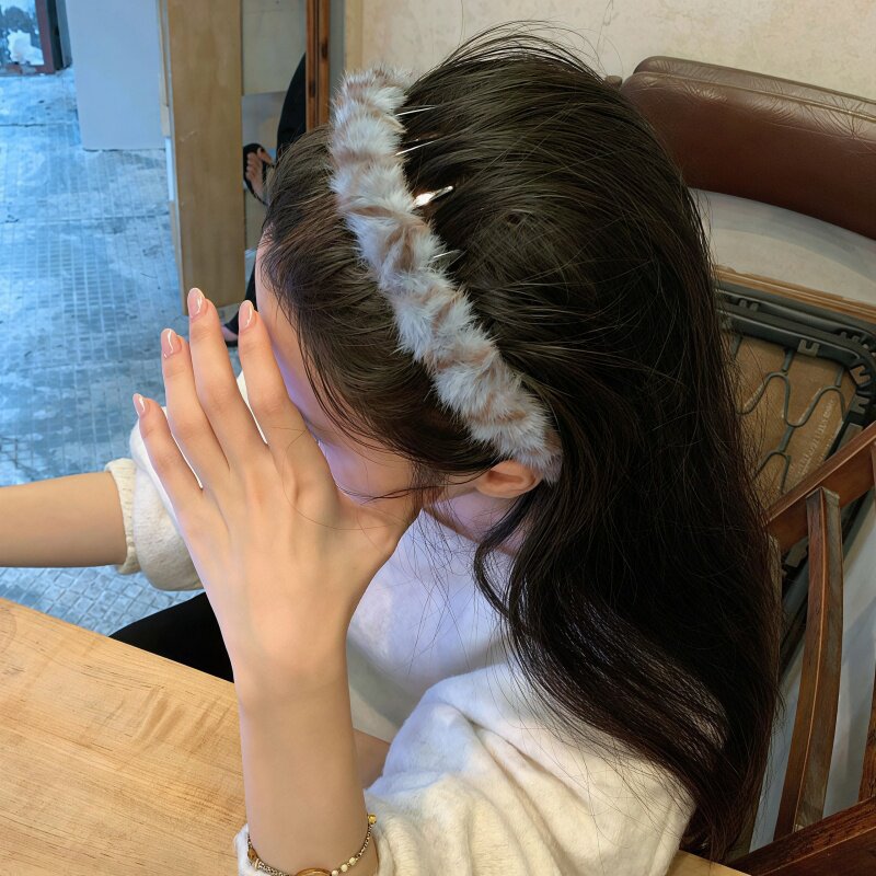 时髦豹纹高颅顶毛绒齿梳发箍女高级感发卡头饰洗脸压发头箍发饰
