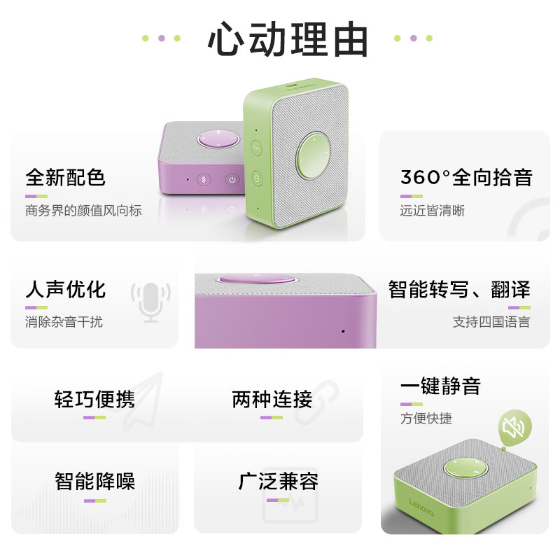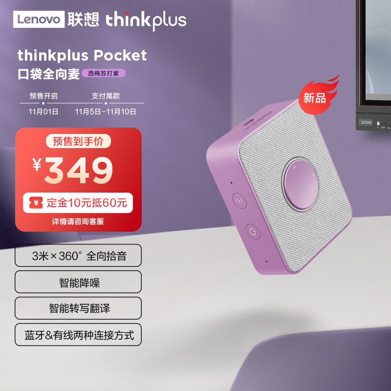 联想thinkplus Pocket办公视频会议全向麦克风降噪蓝牙音响音箱USB有线语音通话随身电脑手机通用MCP01炫彩版