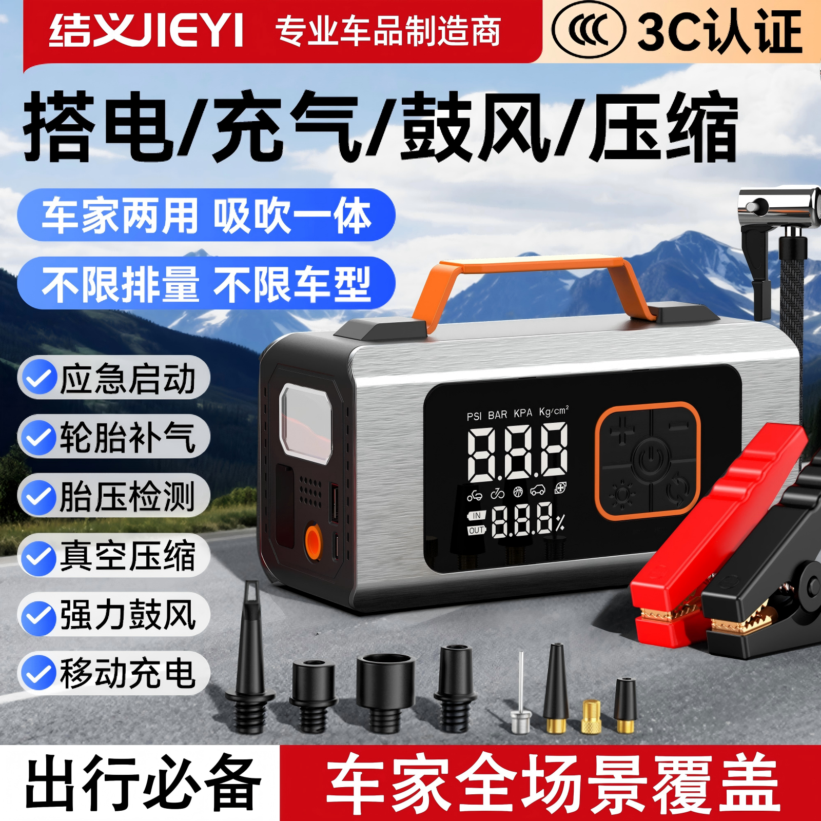 小能人汽车应急启动电源充气泵一体机车载打气电瓶紧急搭电宝神器