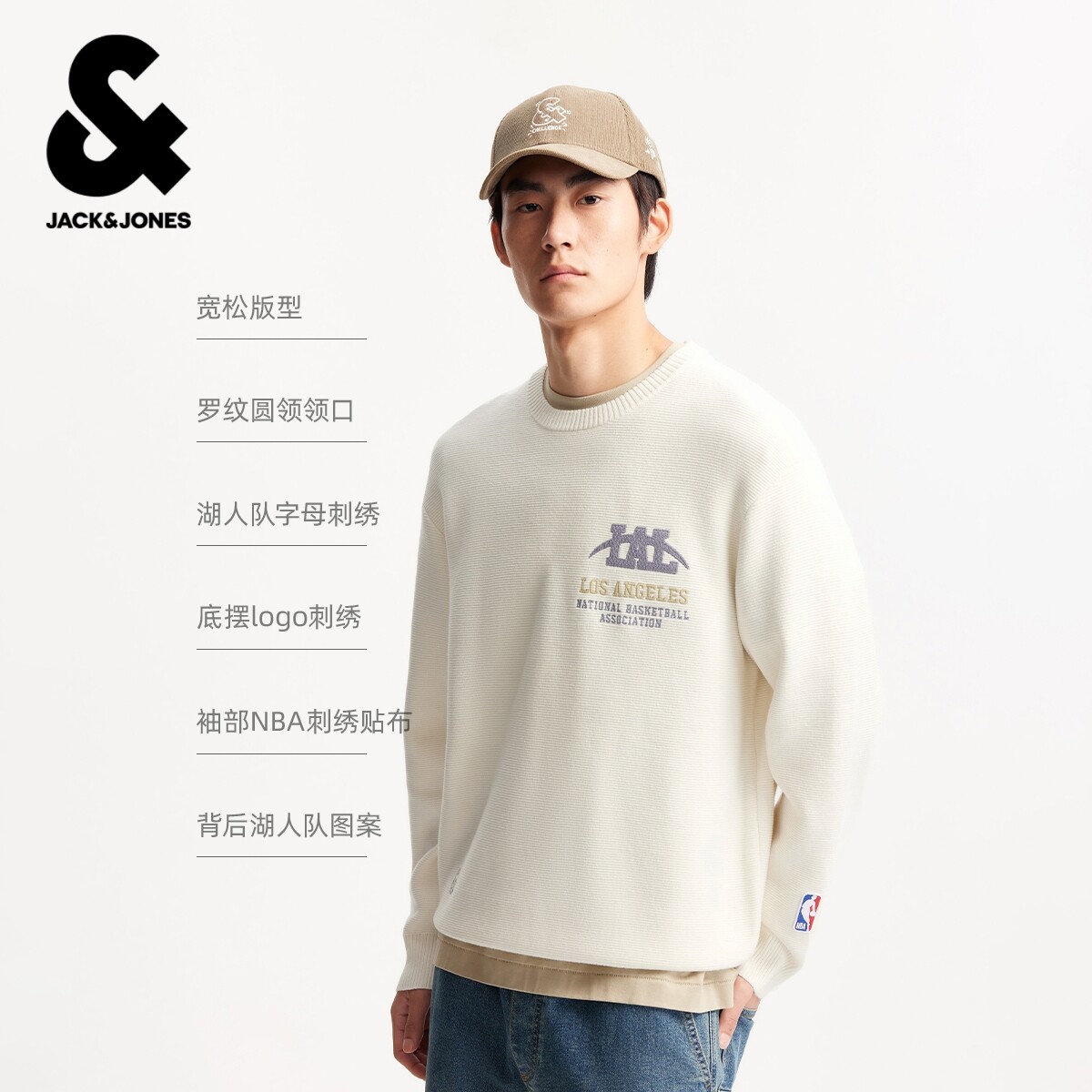 杰克琼斯春季男装针织衫毛衣NBA湖人队时尚百搭潮休闲宽松圆领