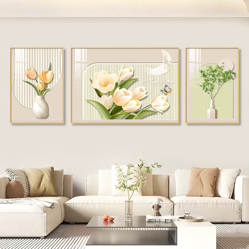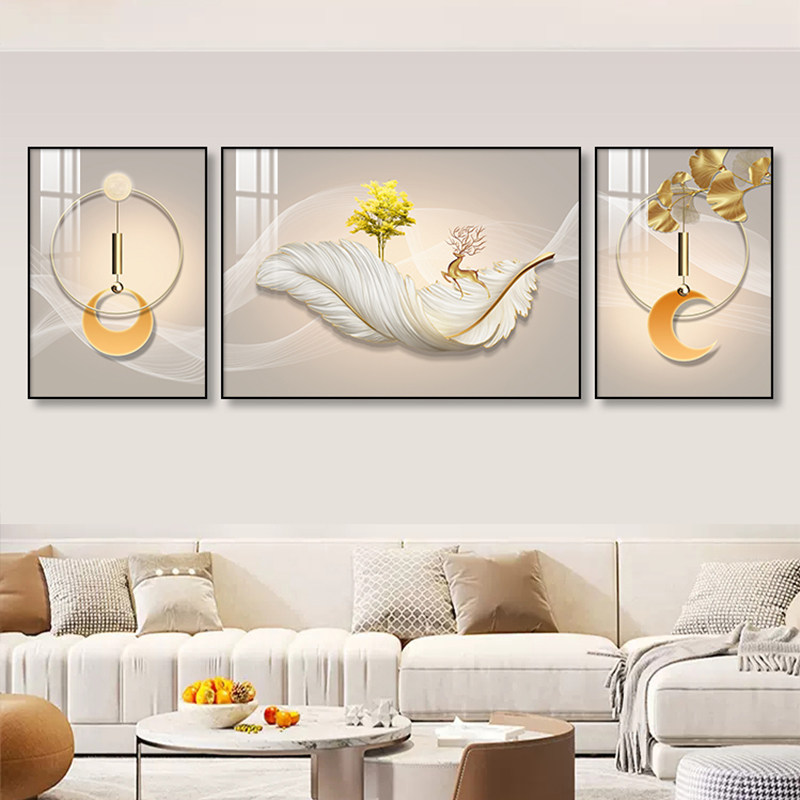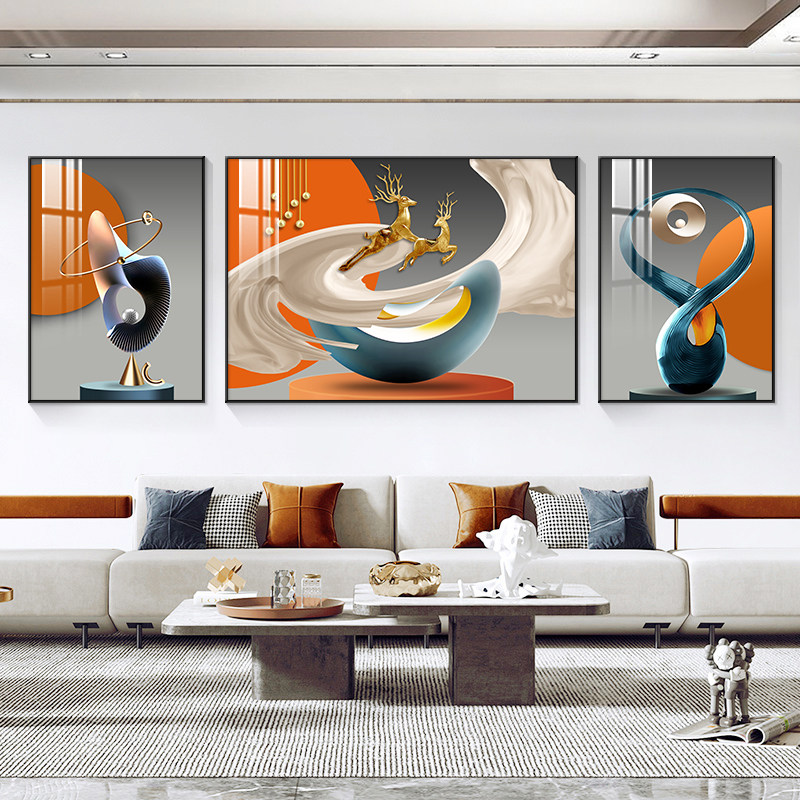 现代简约客厅装饰画高级感三联画晶瓷壁画沙发背景墙挂画高档大气