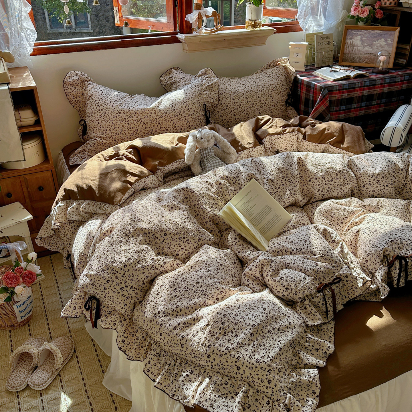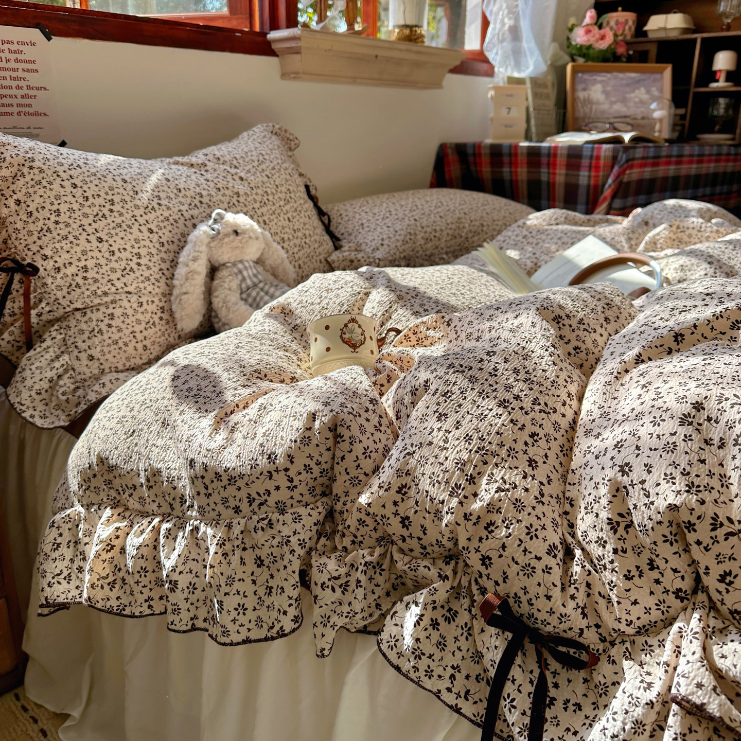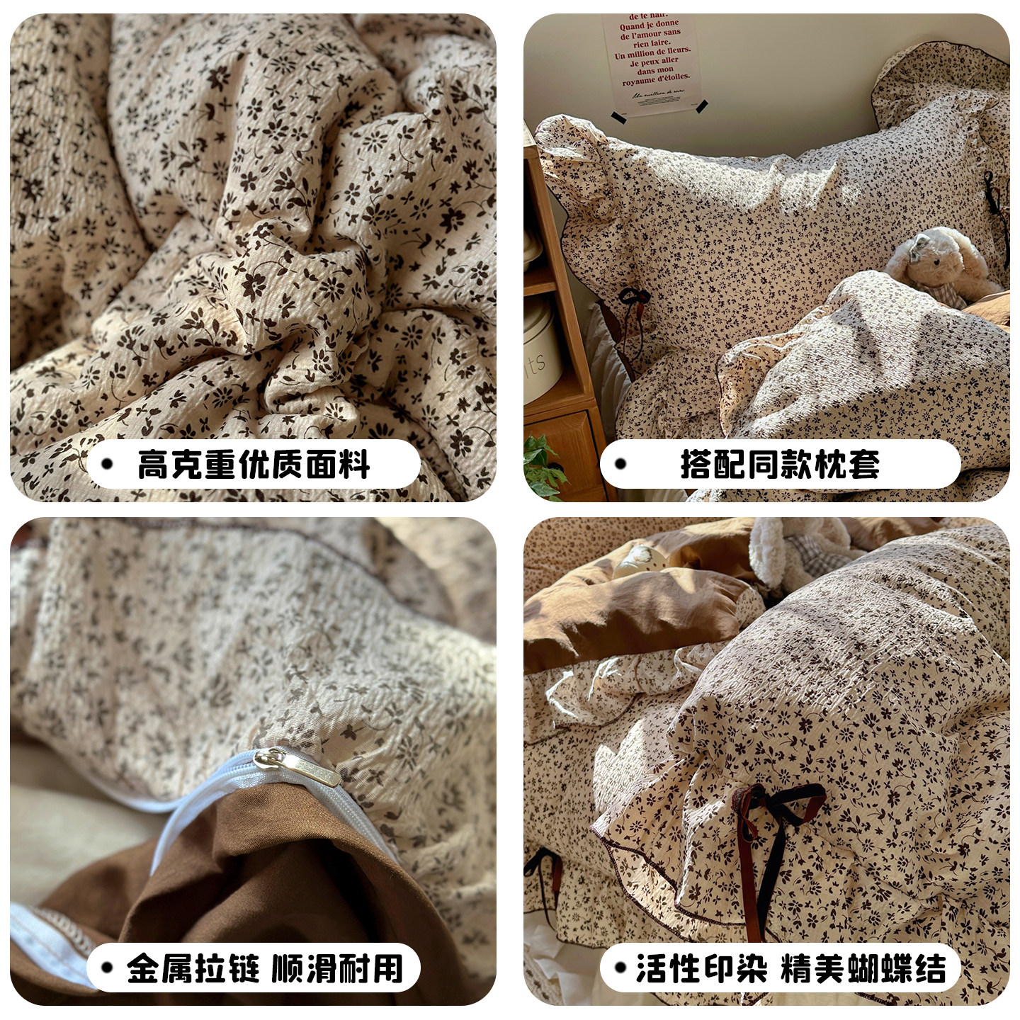 A类双层纱床上四件套纯棉全棉新款田园床单件被套被罩宿舍三件套4