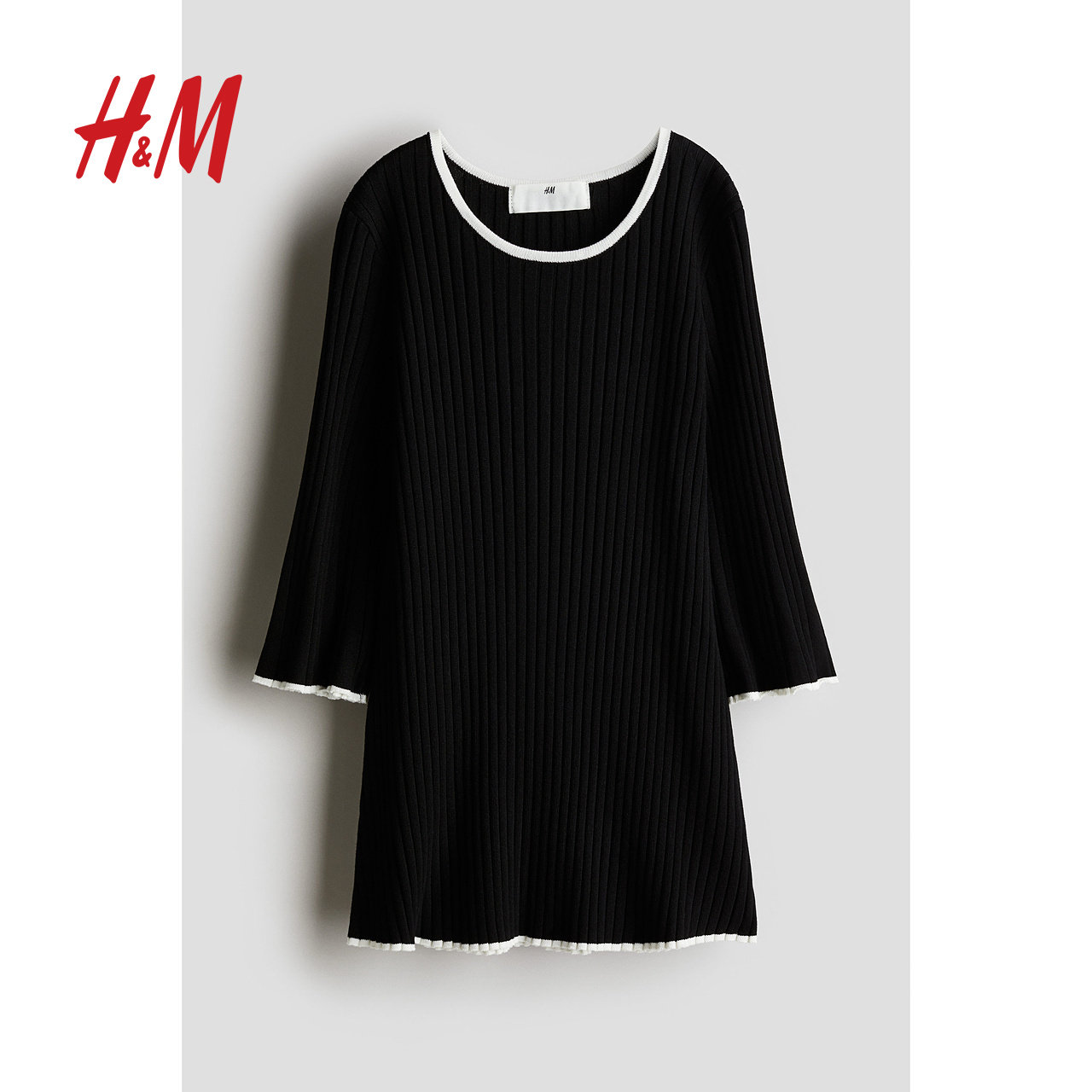 HM童装儿童女童连衣裙冬季气质新中式风圆领针织公主裙1248071