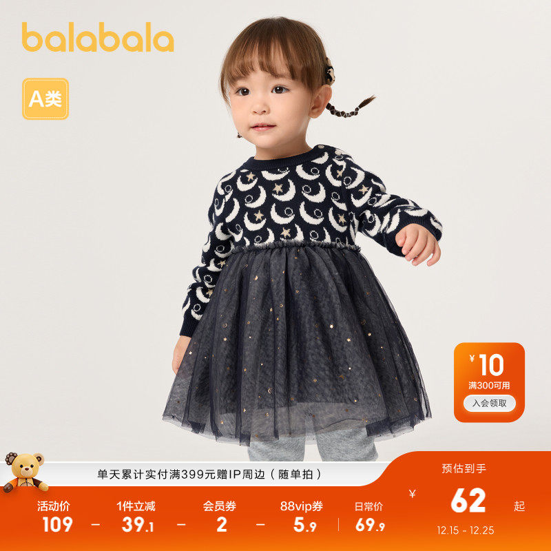 巴拉巴拉宝宝裙子公主裙洋气儿童秋冬连衣裙拼接纱裙精致时髦洋气