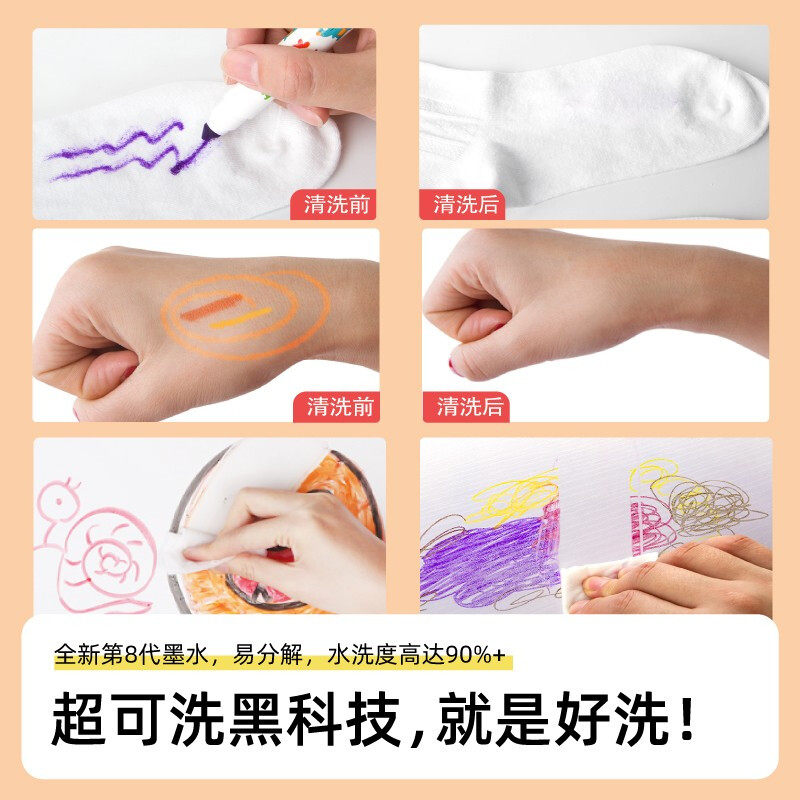 得力可水洗水彩笔24色儿童幼儿园美术专用无毒彩色笔36色粗头画笔