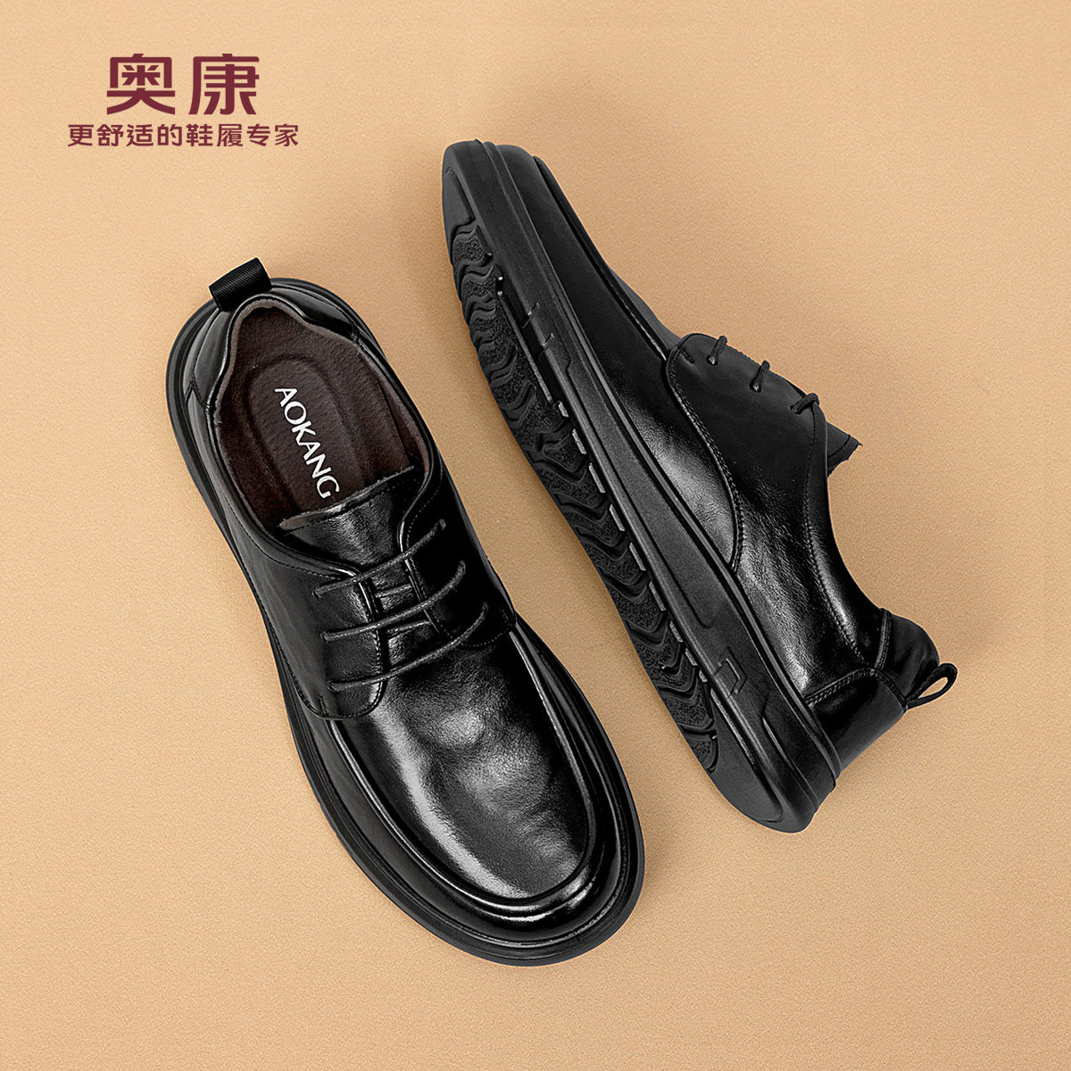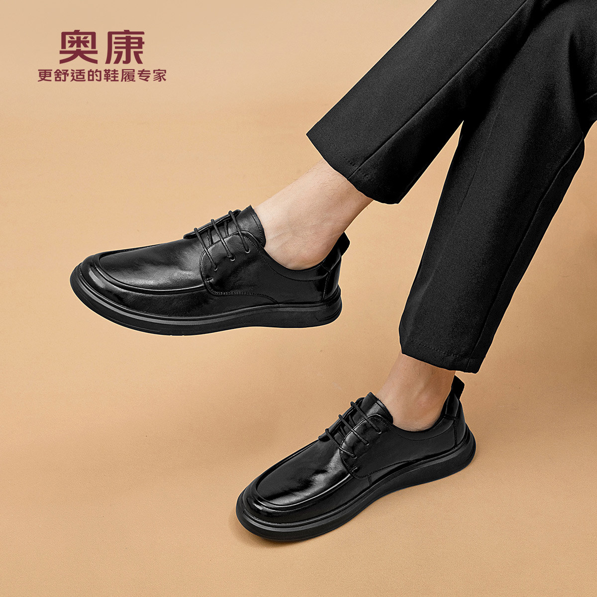 奥康 男鞋2025秋季新款真皮商务休闲皮鞋舒适透气黑色通勤工作鞋N