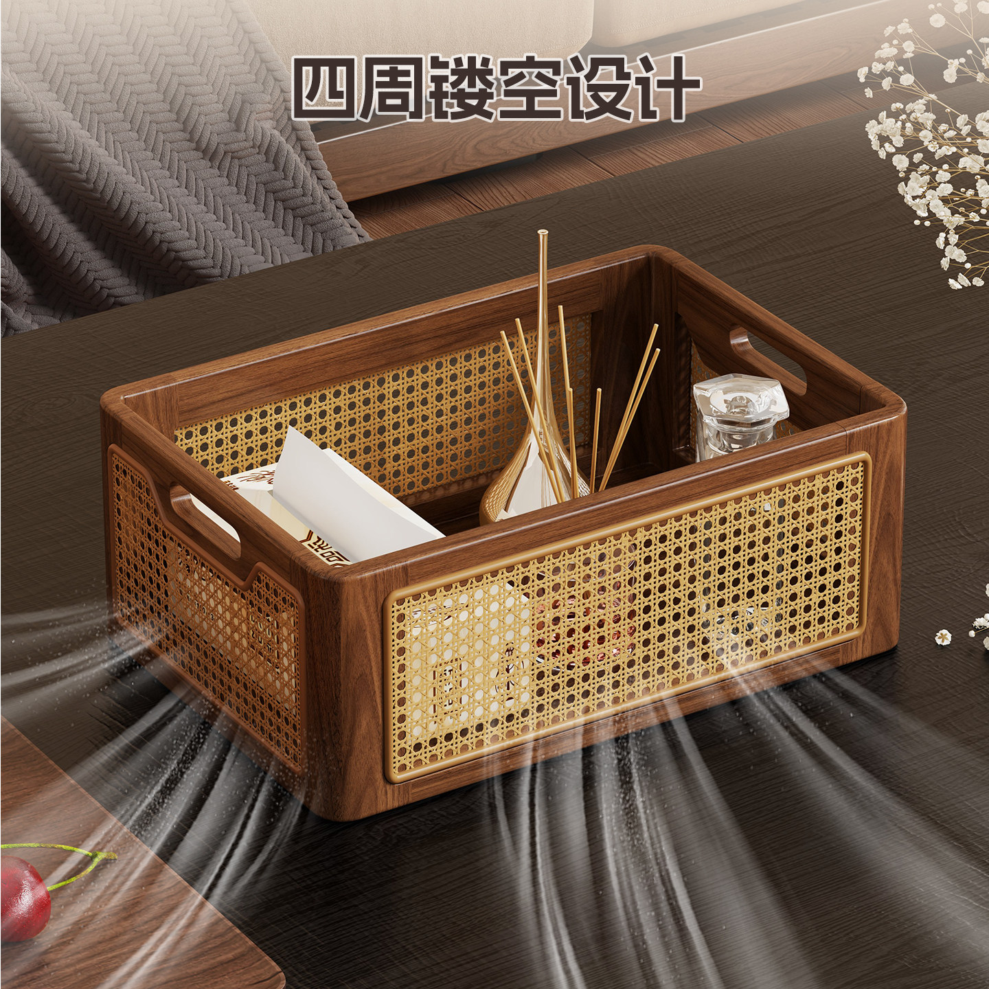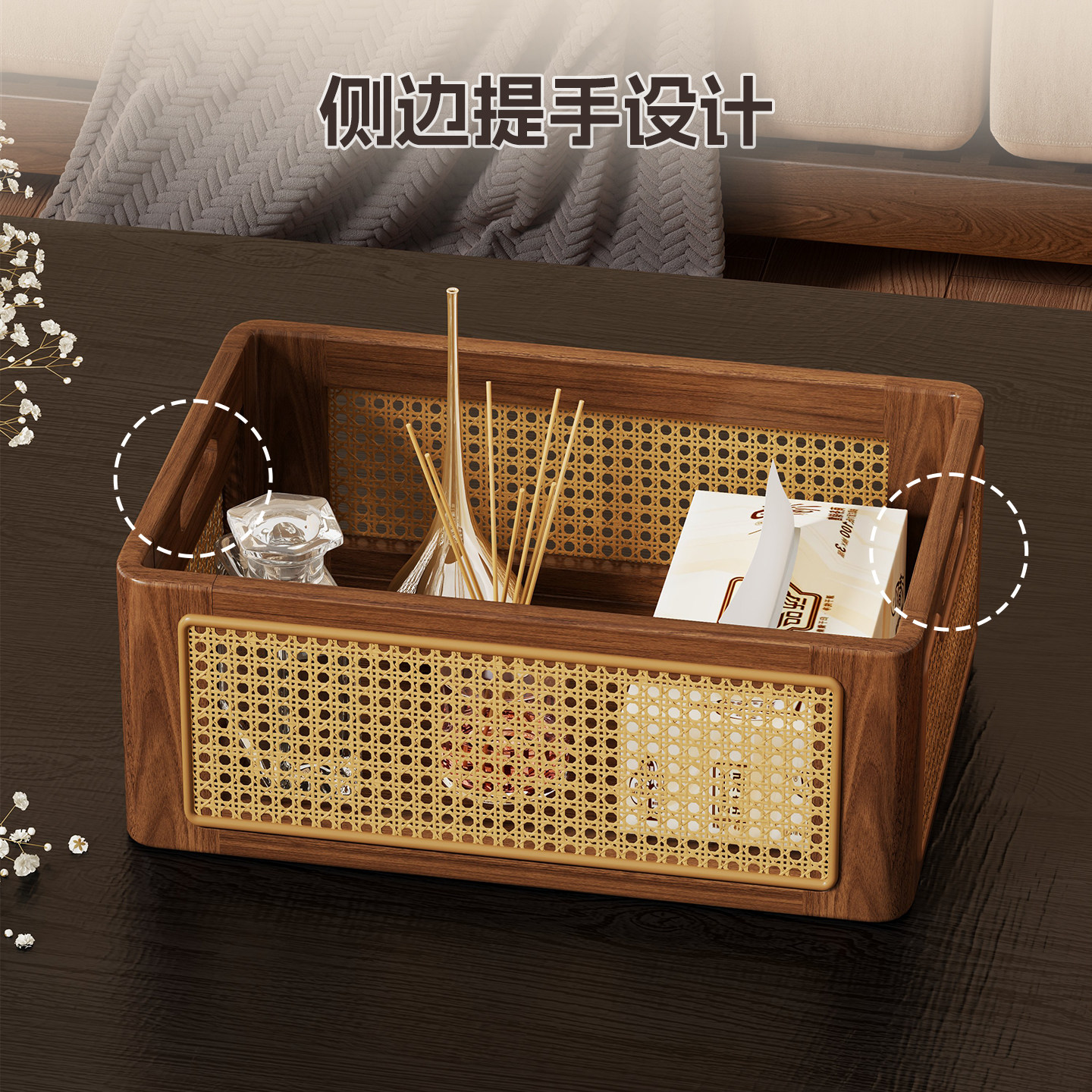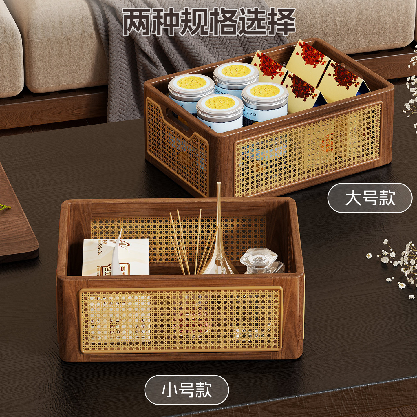 实木桌面收纳盒客厅茶几零食杂物收纳筐家用玄关台面化妆品置物架
