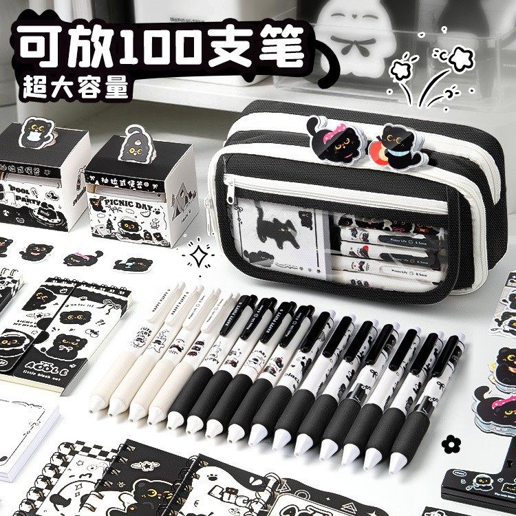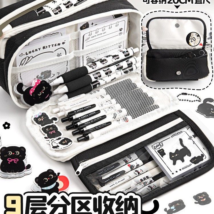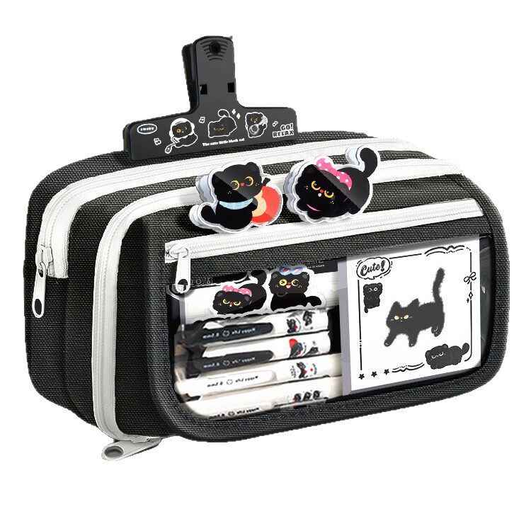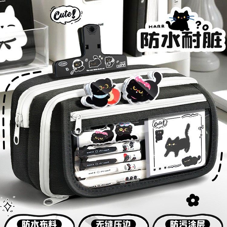 9层大容量小黑猫笔袋透明初中高颜值文具盒ins风铅笔袋男女孩笔盒