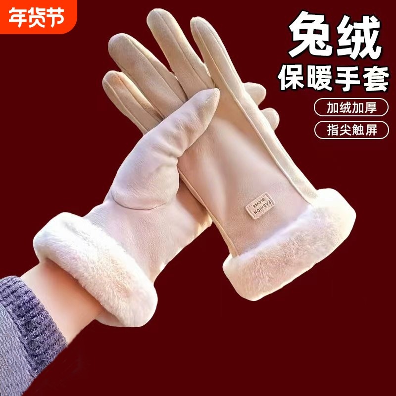 手套冬天女加绒加厚保暖可爱麂皮绒女士骑行防寒骑车防风冬季滑雪