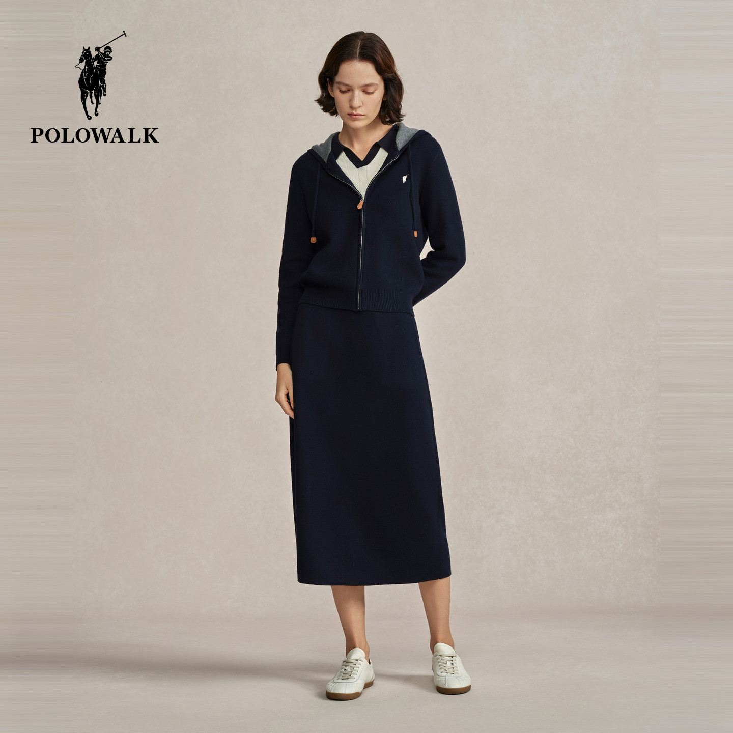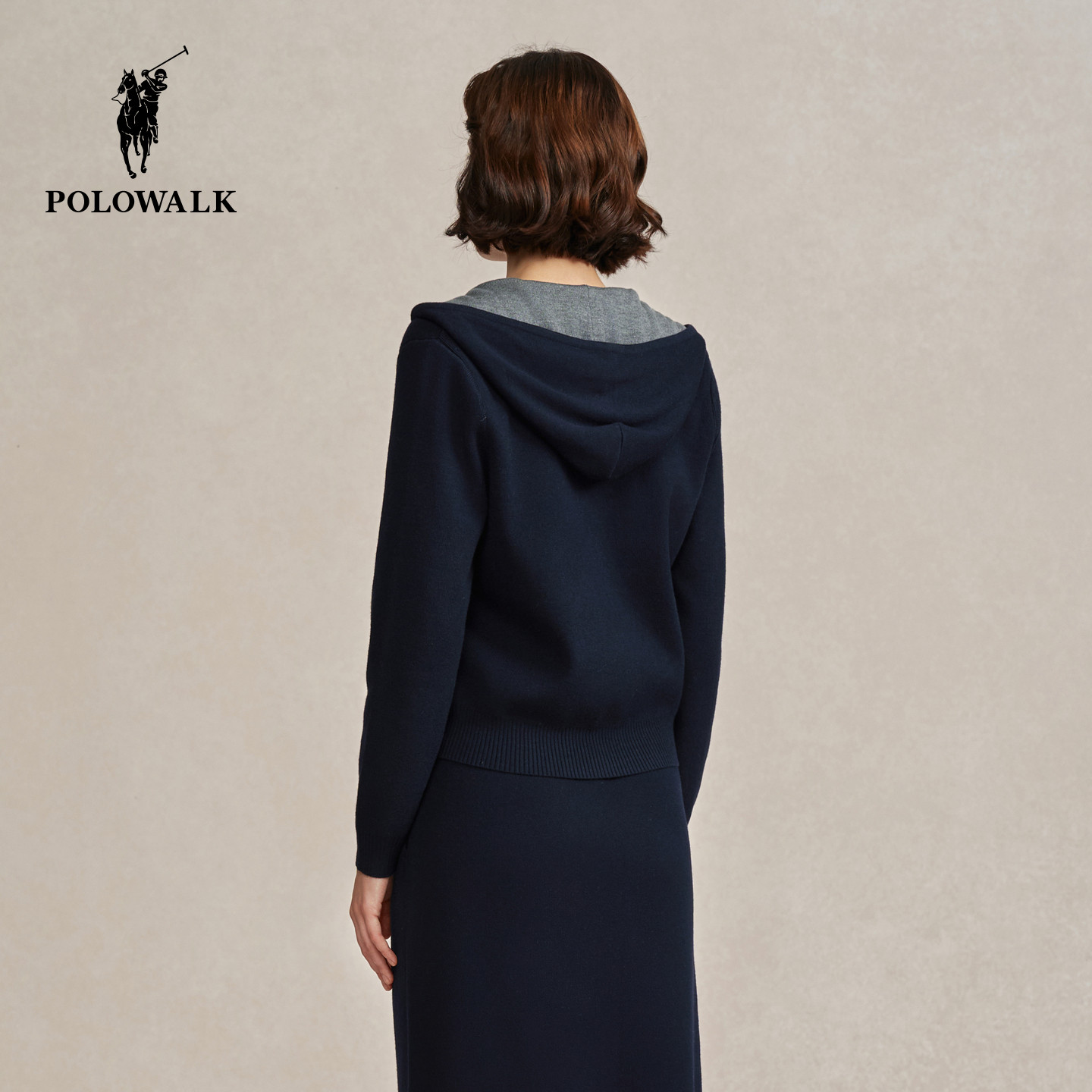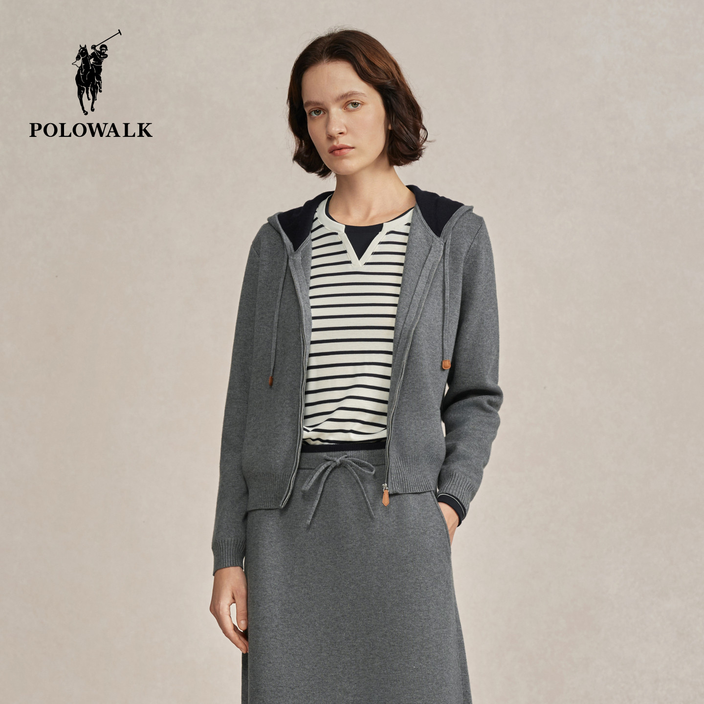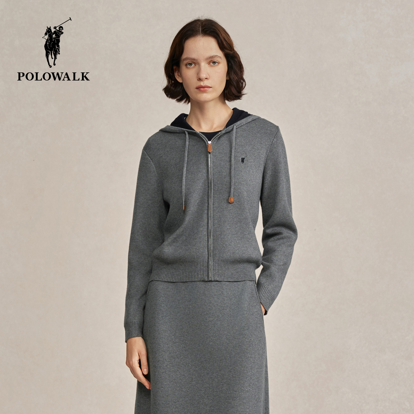 【含绵羊毛】POLOWALK女式长袖针织衫2025秋季新品连帽针织开衫女