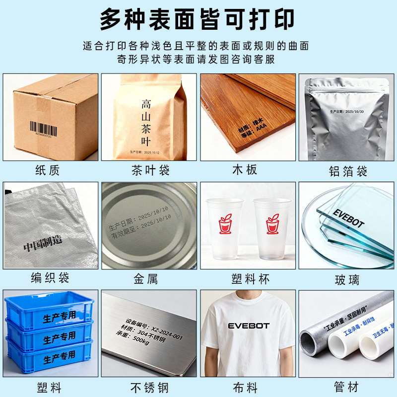EVEBOT亿瓦手持打印机手持喷码机塑料袋金属纸箱衣服diy商标2.6大尺寸生产日期二维码标签logo快干防水打码机