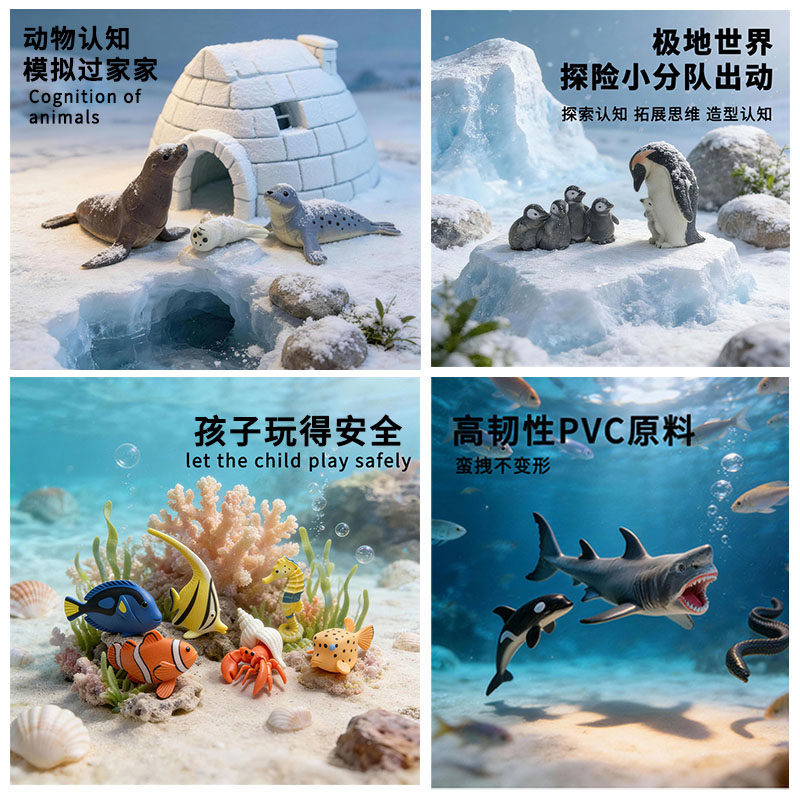 贝恩施动物模型儿童仿真玩具认知早教海洋野生动物园宝宝礼物