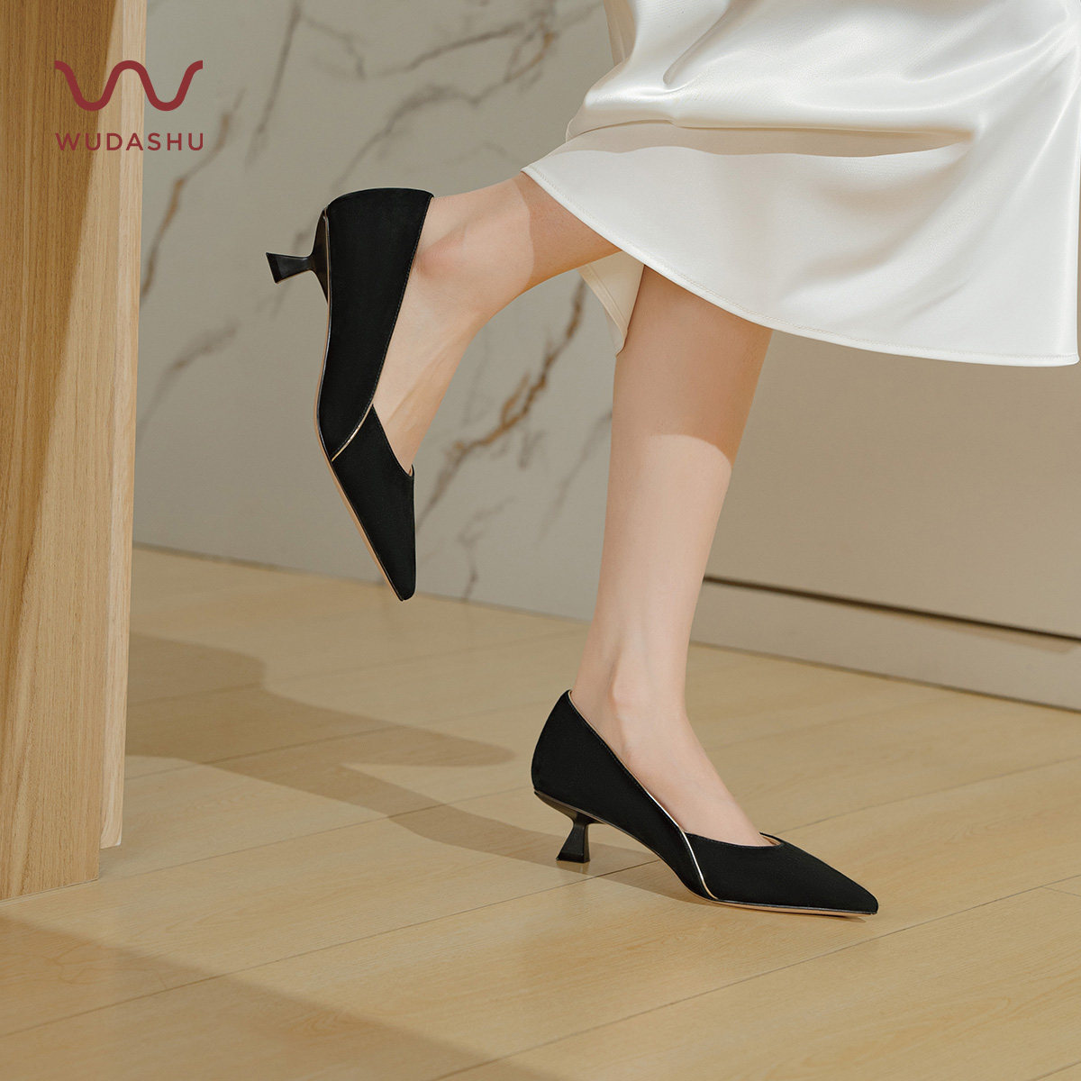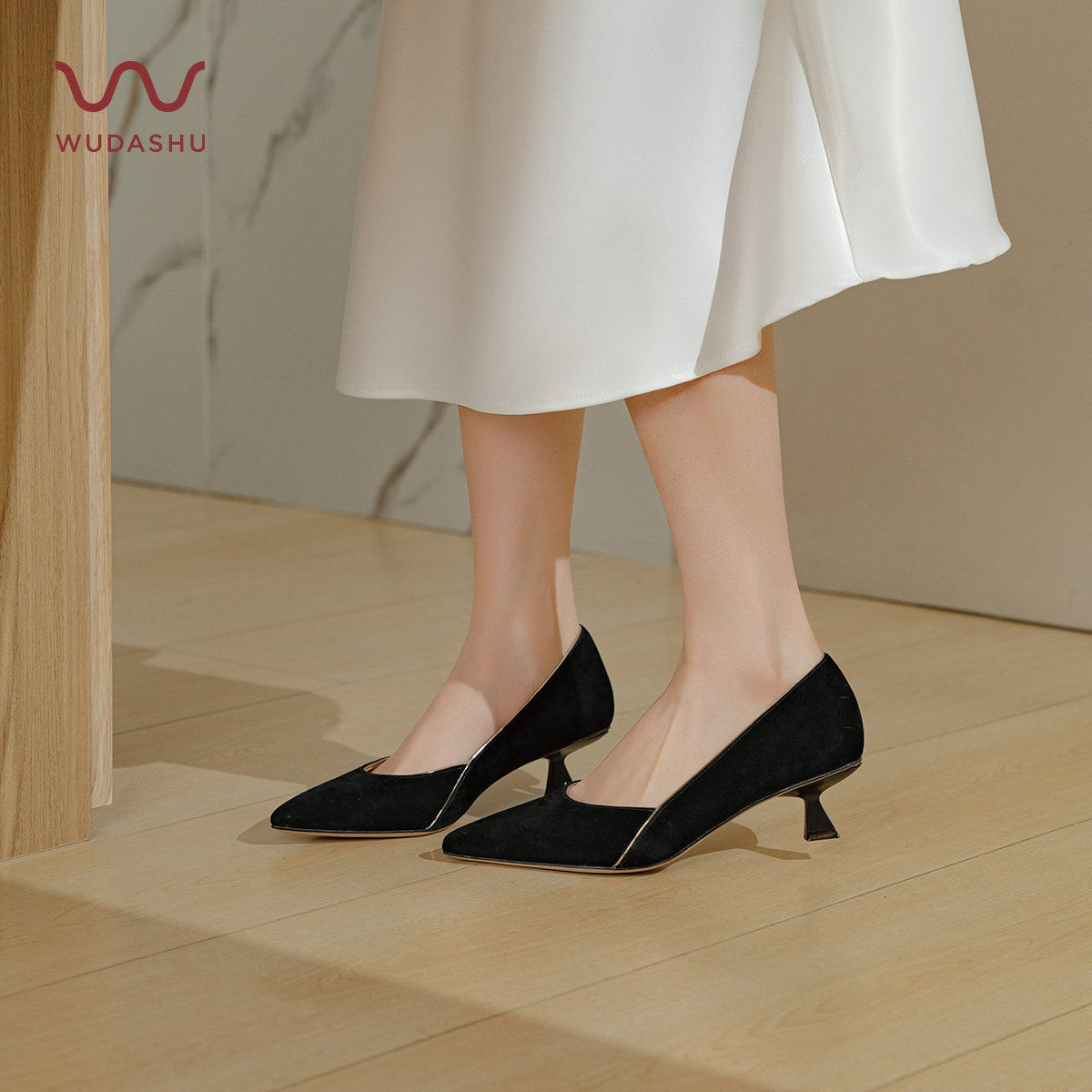 护趾棉系列吴大叔2025秋冬尖头高跟鞋绒面显瘦细跟女鞋时尚单鞋