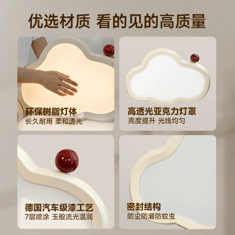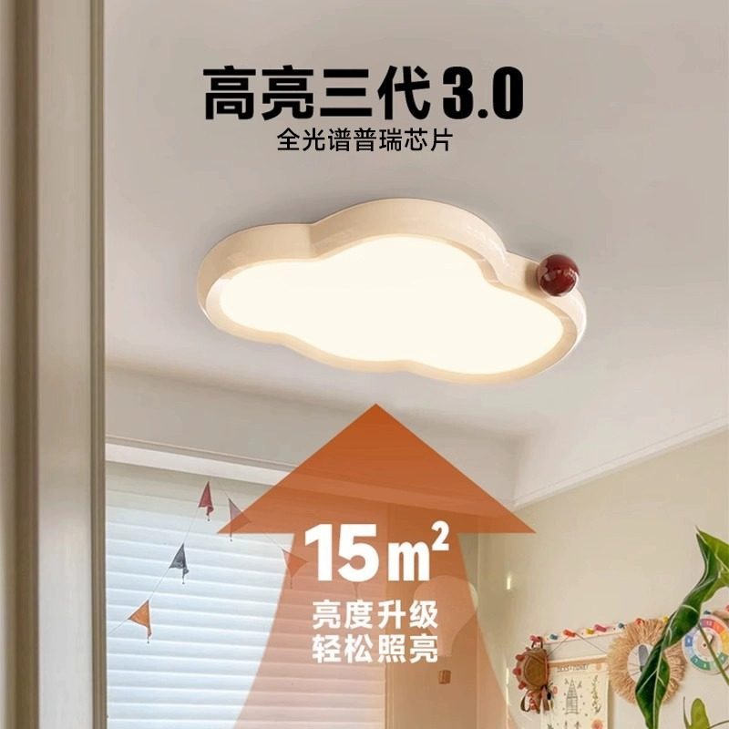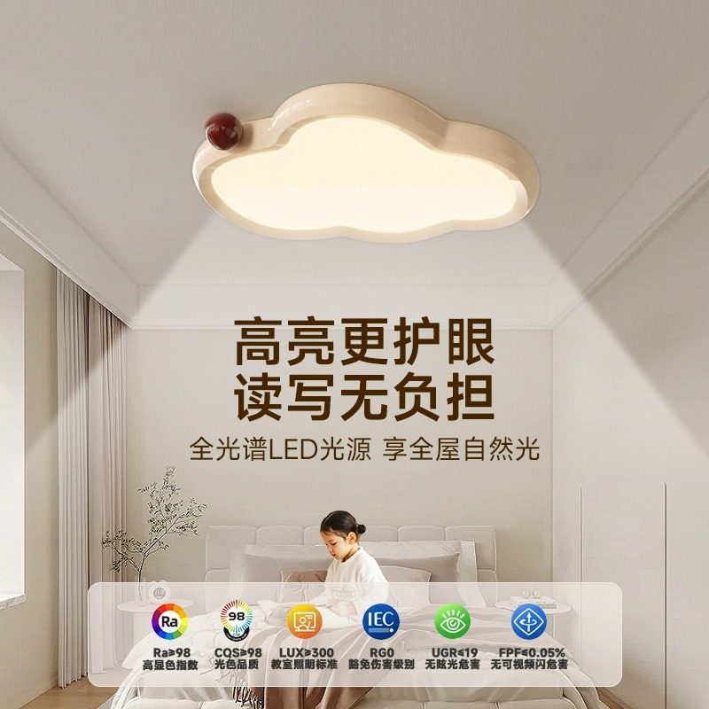 长虹云朵灯奶油风儿童房灯男孩女孩房间灯全光谱护眼卧室灯吸顶灯