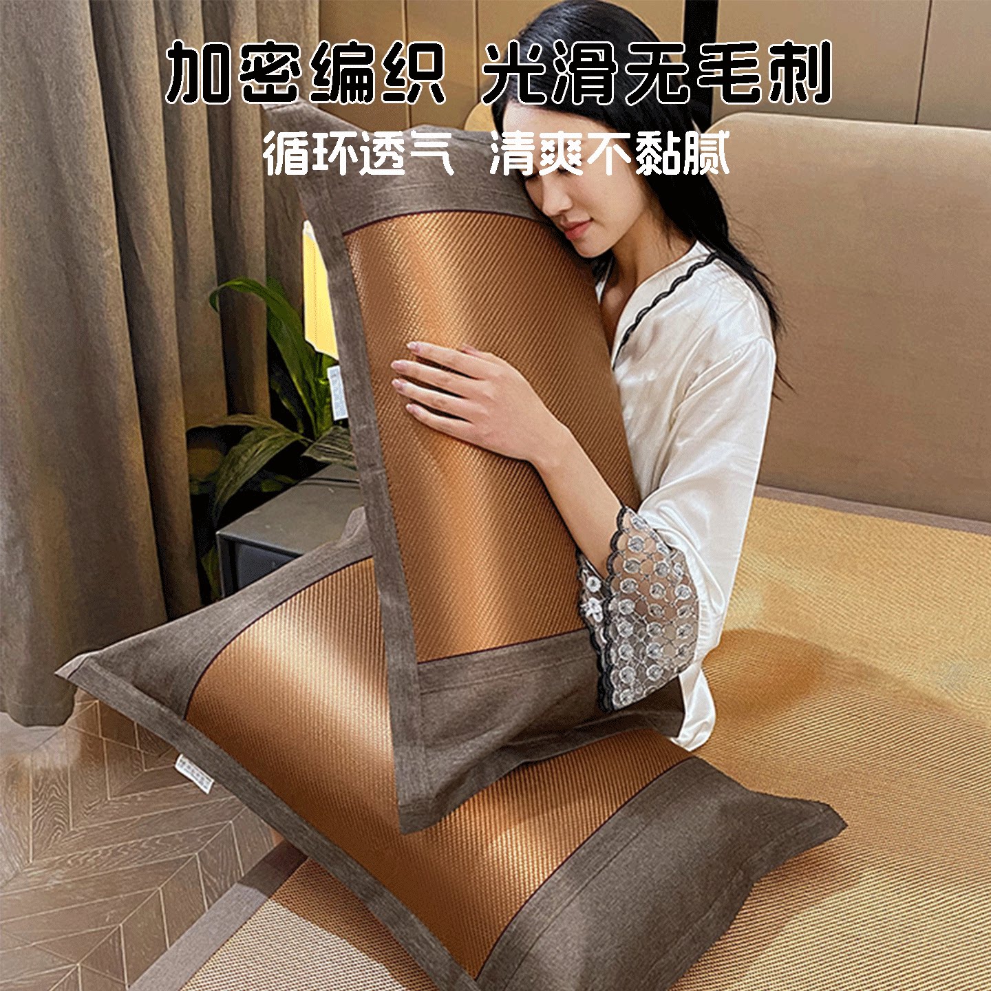 花花公子夏季凉席枕套藤编枕头套子凉枕套单人家用成人透气枕芯套