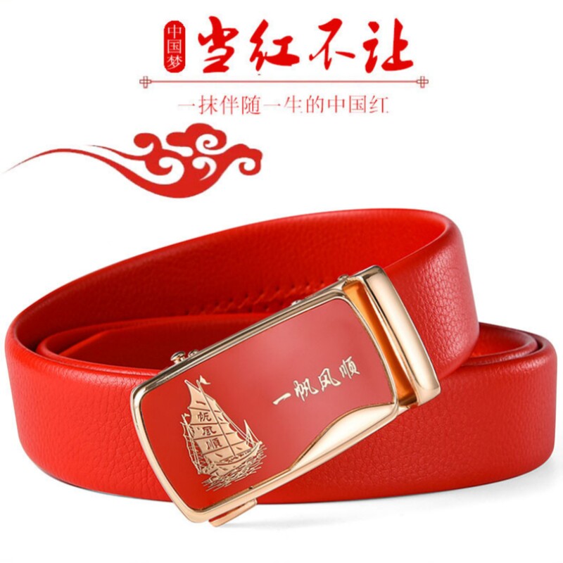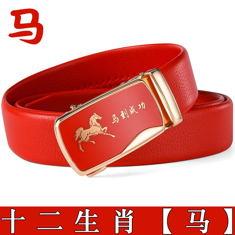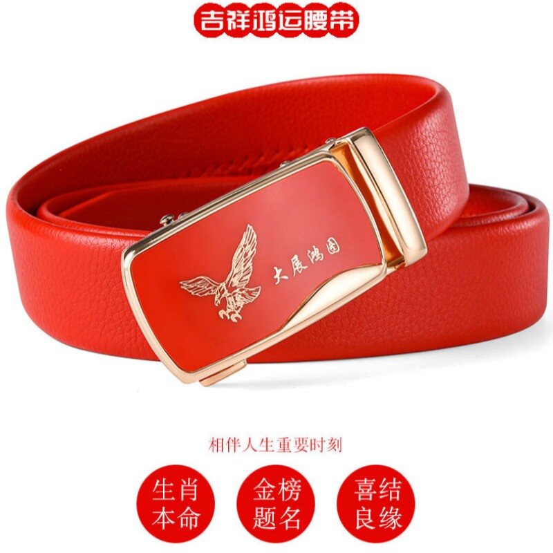 红色本命年腰带春节过年男士真皮皮带激光图案腰带
