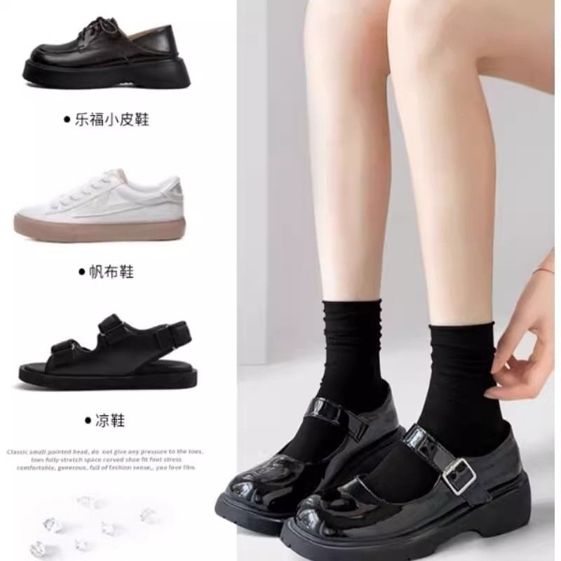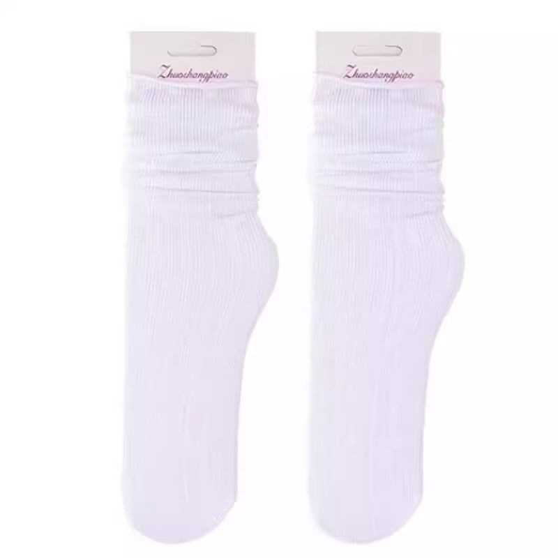 冰冰袜子女黑白色夏季薄款中筒堆堆袜夏天冰丝长袜白袜子天鹅绒