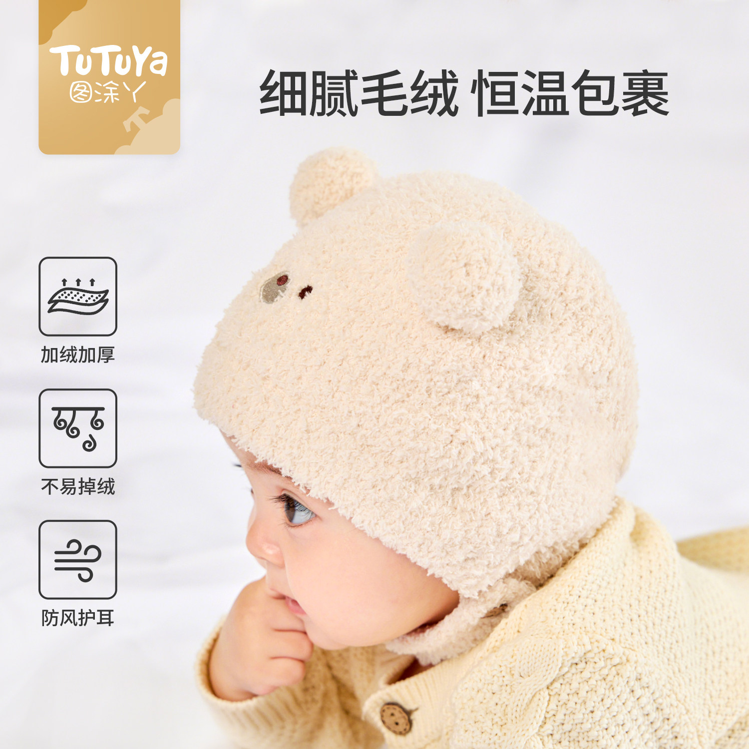 hugz儿童帽子围巾秋冬户外男孩女孩保暖针织毛线帽护耳防风熊仔帽