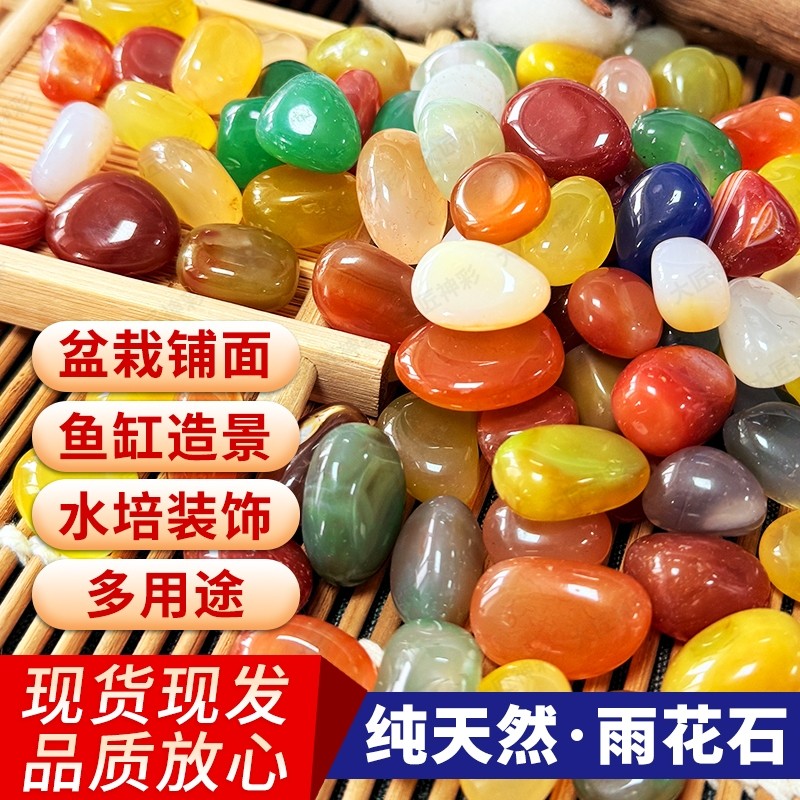 彩色玛瑙石雨花石鹅卵石鱼缸水培花盆造景装饰铺面天然小石头石子