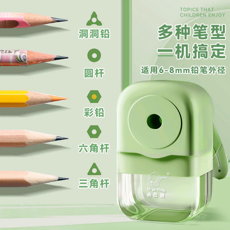 咔巴熊熊猫削笔机手摇式削笔器卷笔刀学生转笔刀铅笔旋笔绞笔儿童自动进铅多功能简约卡通男女孩幼儿园刨笔机