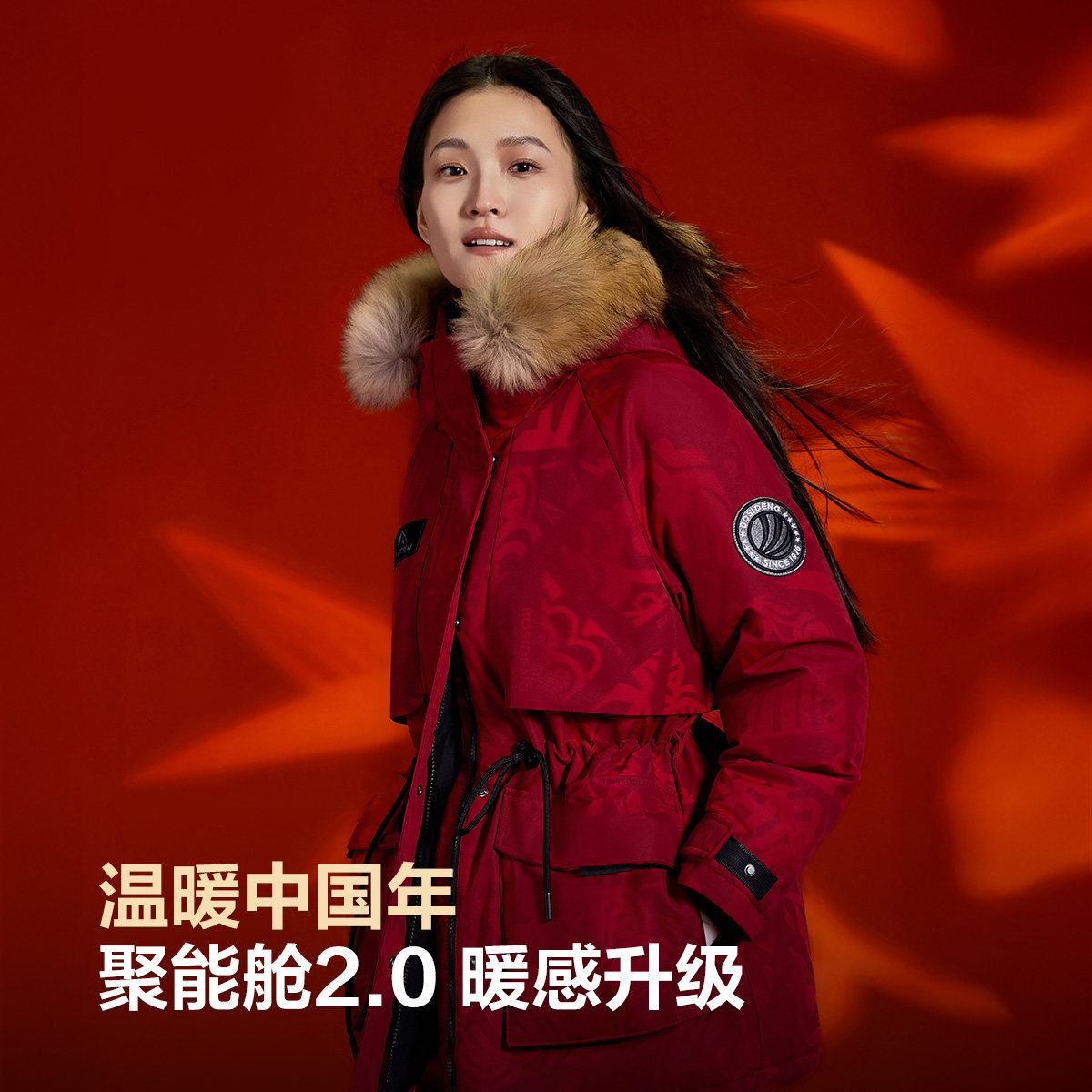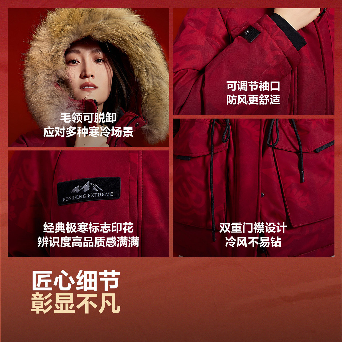波司登冬极寒中长款收腰显瘦鹅绒派克毛领羽绒服女工装大毛领