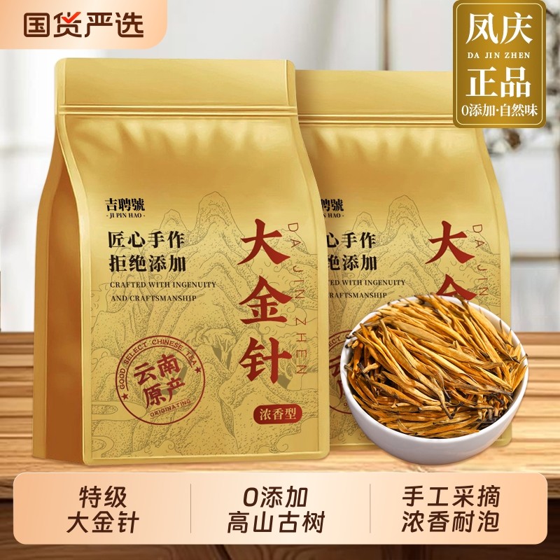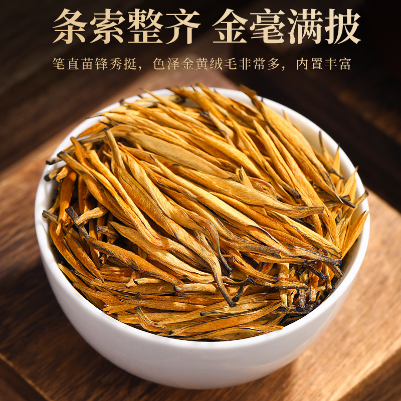 滇红大金针正宗云南凤庆金针滇红特级高山古树嫩芽茶叶红茶蜜香